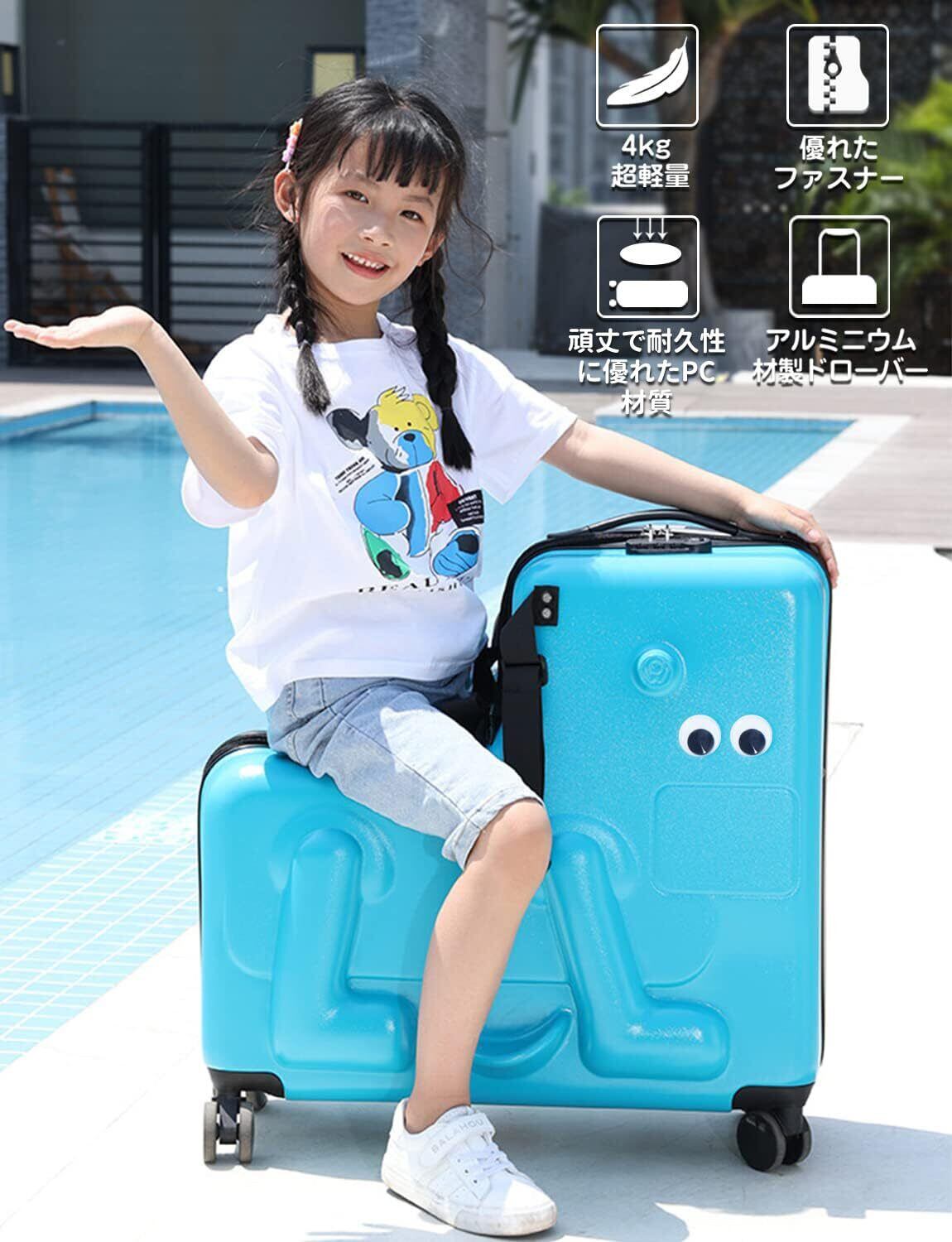 【単なるスーツケースだけではない】お子さんと旅行に行く時大活躍。子供が落ちないようにベルトが付き、三日月形の足置き、手でつかむところなど、子供の遊び心にも満足させる。 荷物を含め35キロまで使用可能です。(ご注意:本商品は玩具ではありません、お子さんが乗る際に、保護者様が十分にご注意ください。)