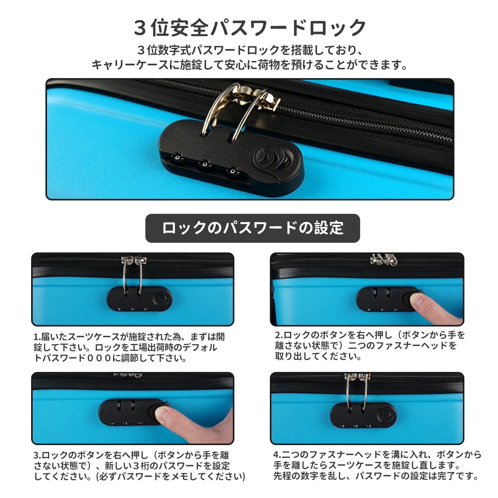 【ダブルキャスター】2階段調整キャリーバー、ダイヤル式ロック、金属ファスナー、360度回転可能ダブルキャスターなど基本装備が充実:アルミニウム合金の2段階伸縮キャリーバーは身長、シーンに合わせて調整ができます。ダイヤル式のロックはお好みの3桁を設定してご使用いただきます。ダブル構造のキャスターを採用することで、一つの車輪にかかっていた負担も半減、耐久性も大幅に向上。360度自由自在に回転ができ、優れた静音性を持っていて、様々な地形でもスムーズに安定の歩行が実現できます。