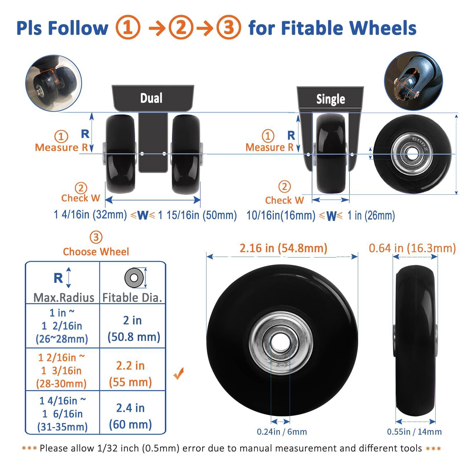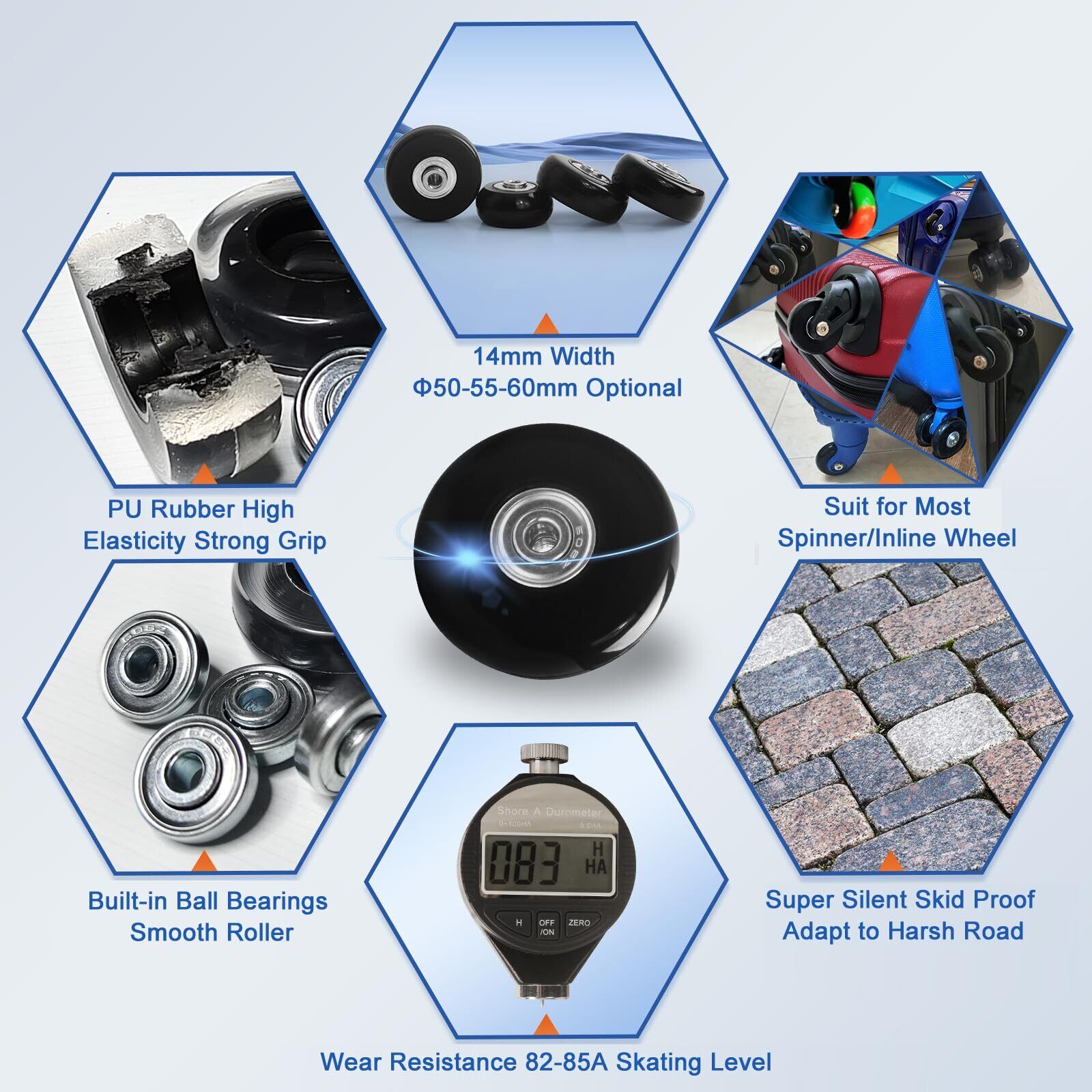 [ASUNTOM] スーツケースホイール交換キット 8個 幅14mm 直径54mm キャスター 交換キット キャリーバッグ 修理 キャスター キャリーケース 自分で旅行かばん車輪取替え 静音トラベルバッグ 薄型トランク双輪修理