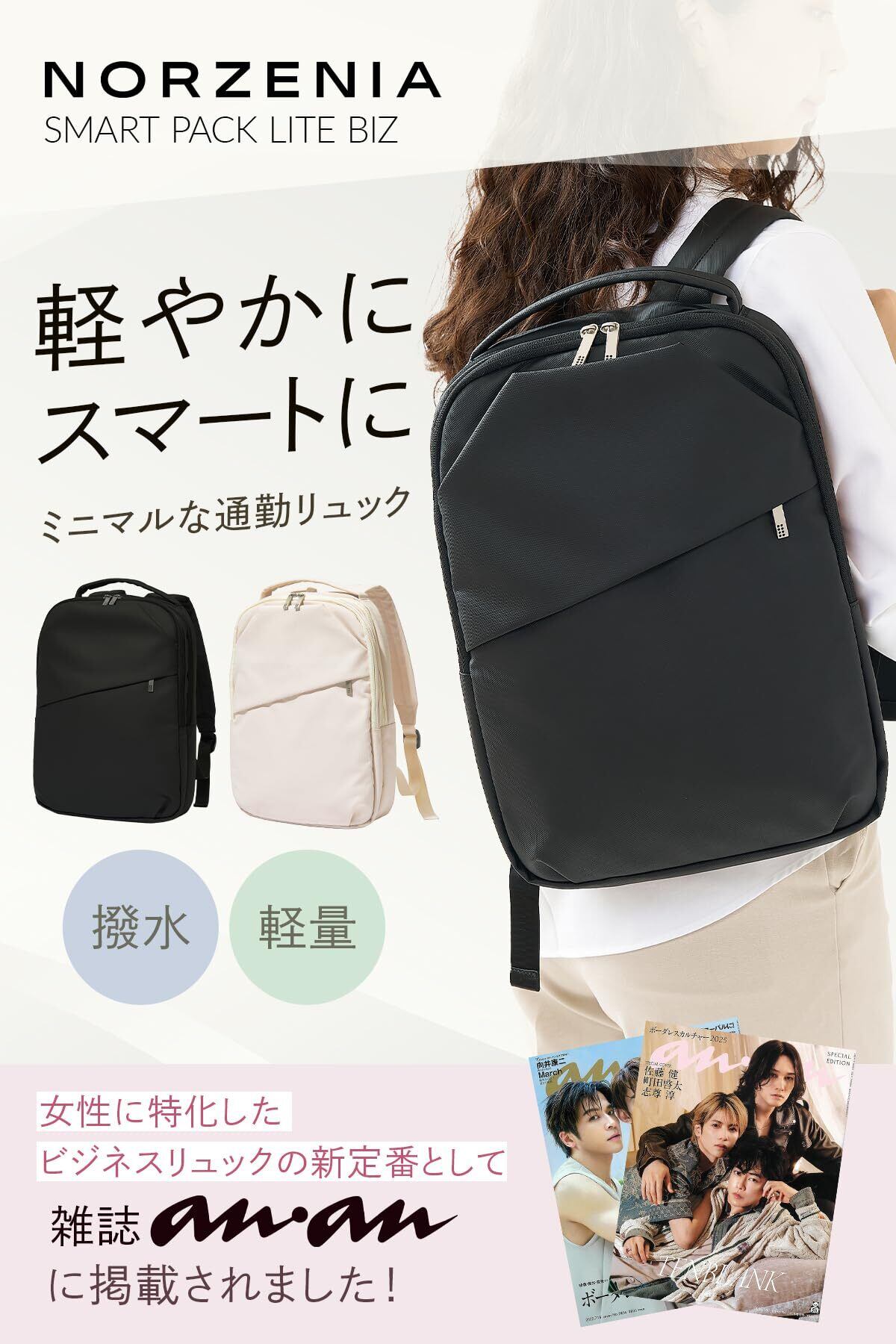 【人気商品】[NORZENIA] 【雑誌anan掲載】新登場、薄さ8cmのスマート リュック レディース 14インチPC A4 撥水 薄型 軽量 450g 通勤 ビジネス きれいめ 通気性 クッション性 ビジネスバッグ
