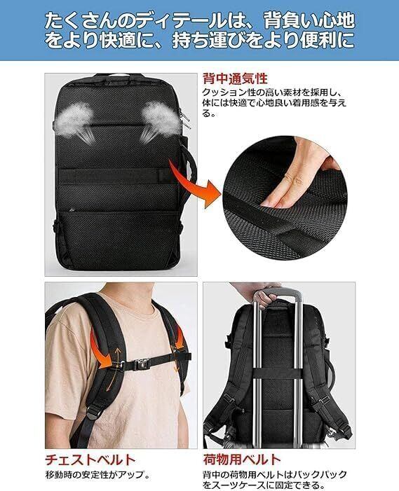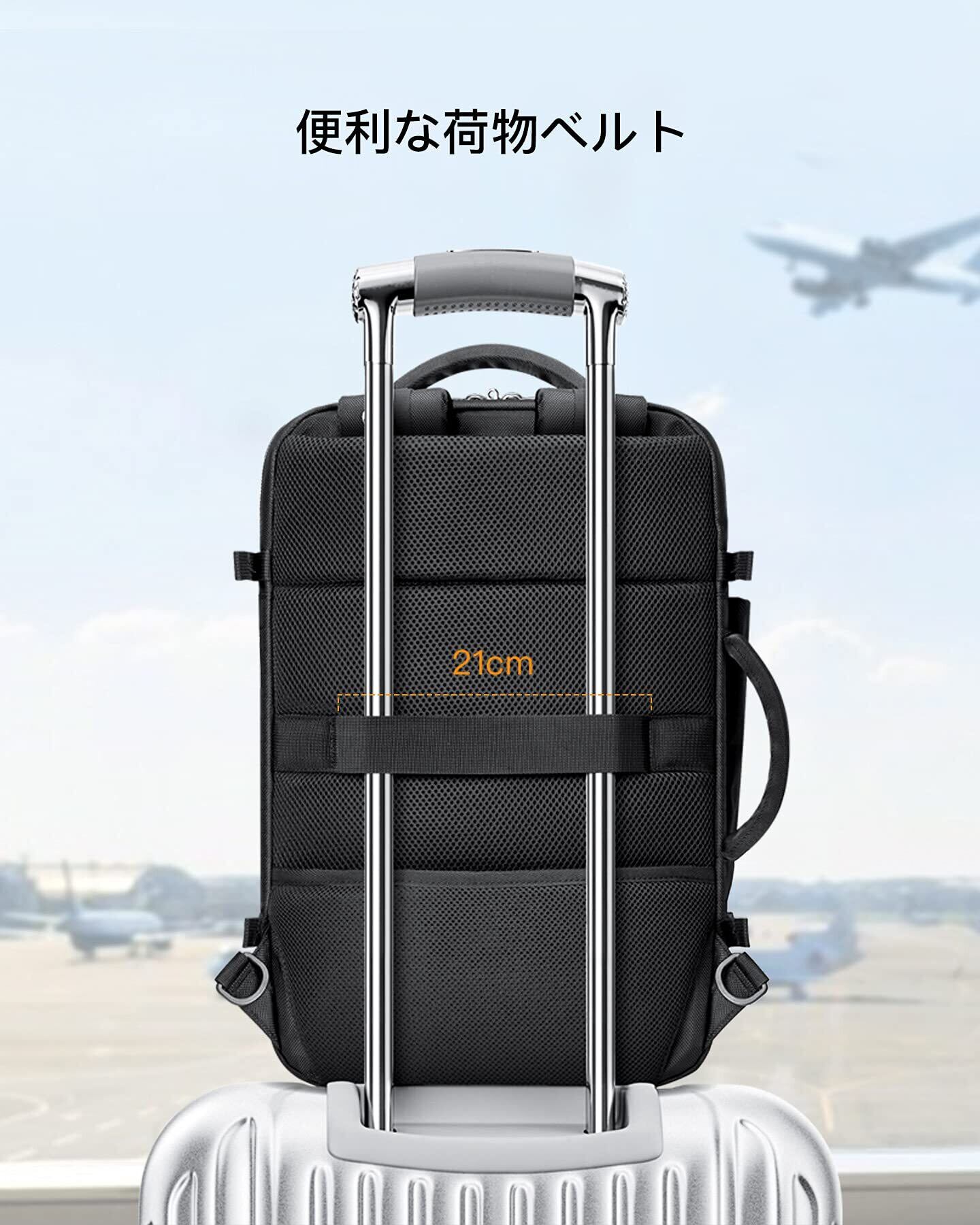 超大容量 ビジネス 旅行 リュック:外寸55x34x20cm(21.6x13.3x7.9インチ)で、機内に持ち込み可能です。15.6-17インチのラップトップのほかに、旅行の時も3~5日分の服も収納できます。