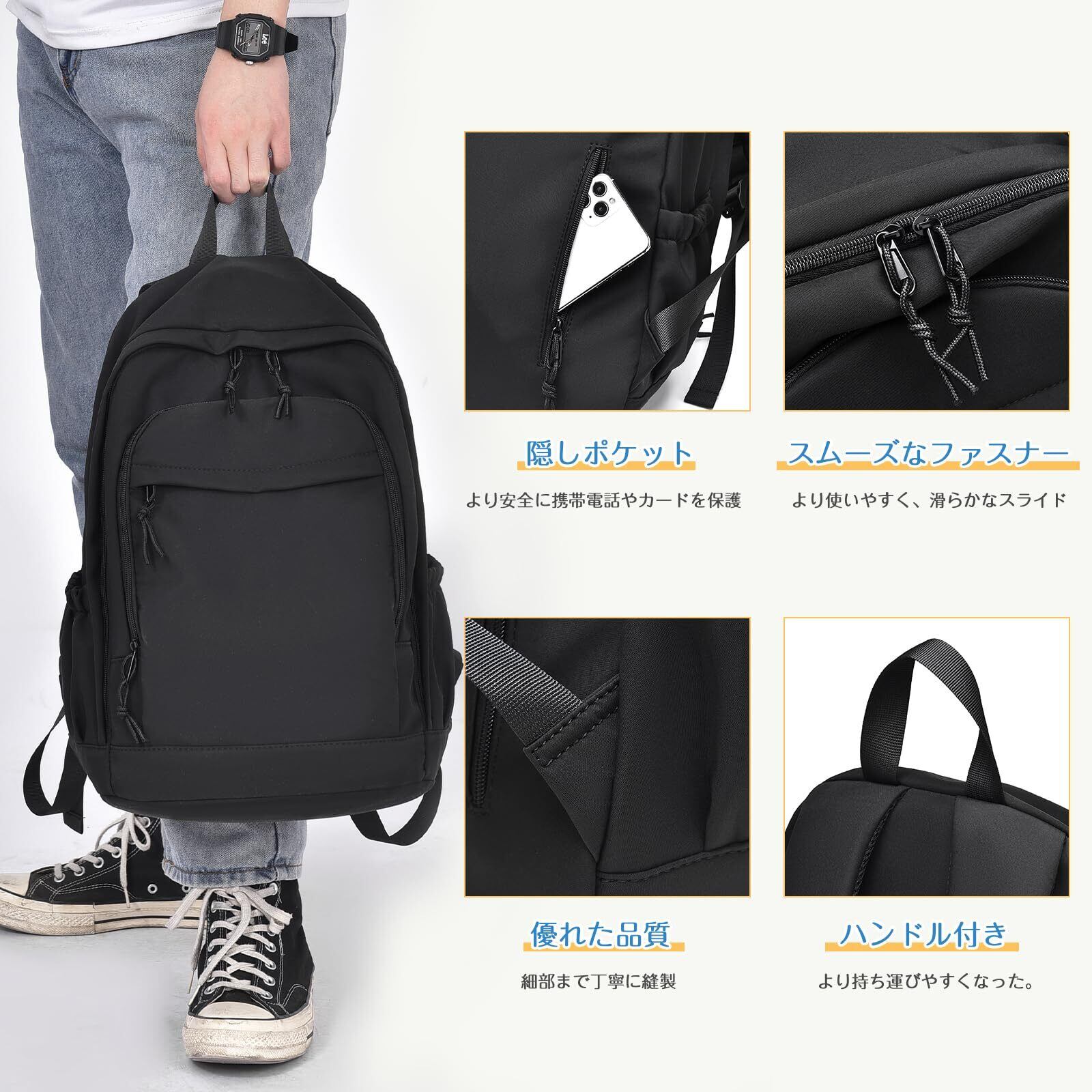 【上質な生地の選択】:のリュックは、耐摩耗性と防水性のオックスフォード生地を選択し、引き裂きに強く長持ちできます。快適で通気性、より良い品質と毎日の使用のための耐久性があります。 雨の日でも安心してお使いいただけます。