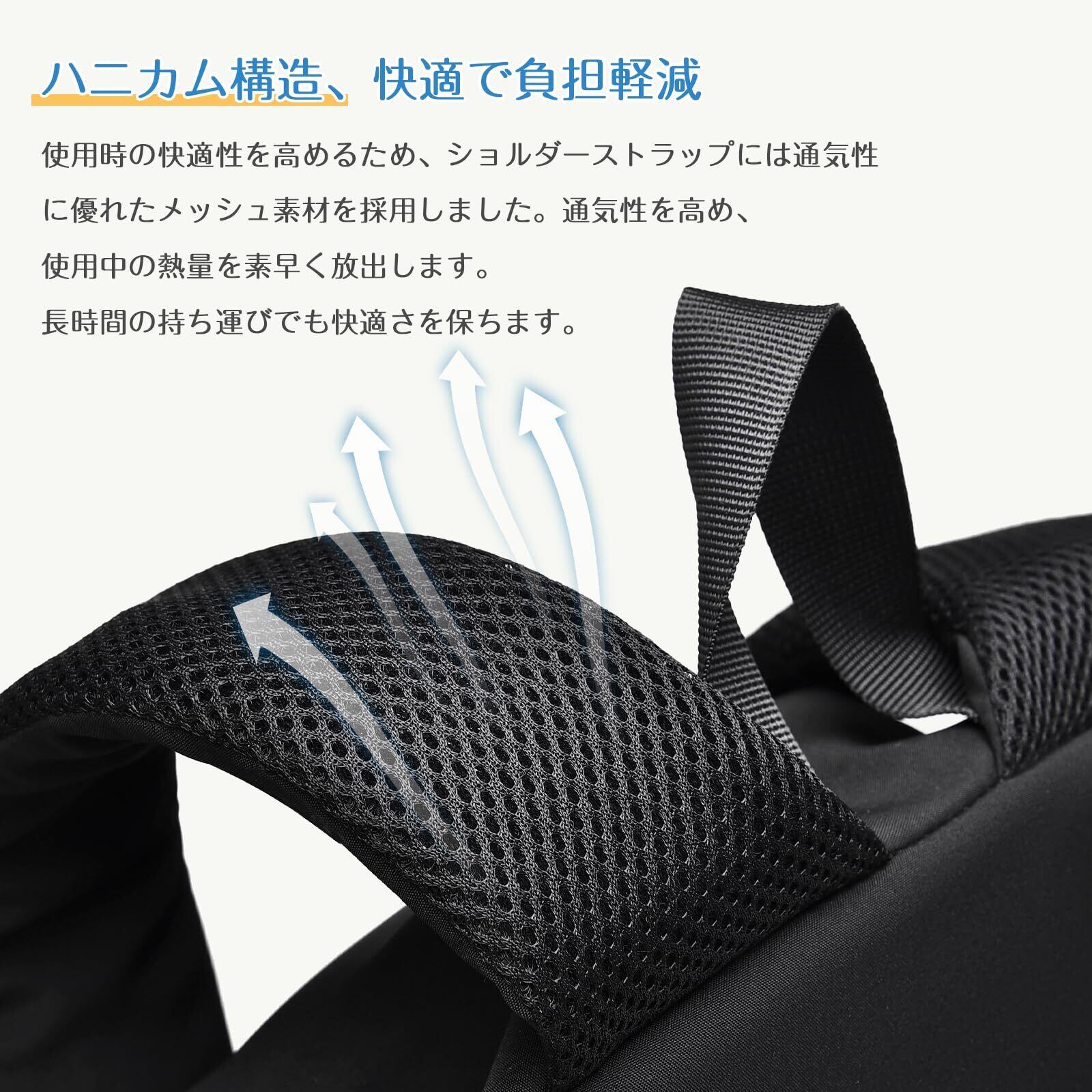 【超軽量デザイン】:平均的なバックパックよりも軽く、薄型のデザインで、重さはわずか380g。 肩への負担を軽減し、旅をより快適にします。長時間の使用でも不快感を感じることはありません。