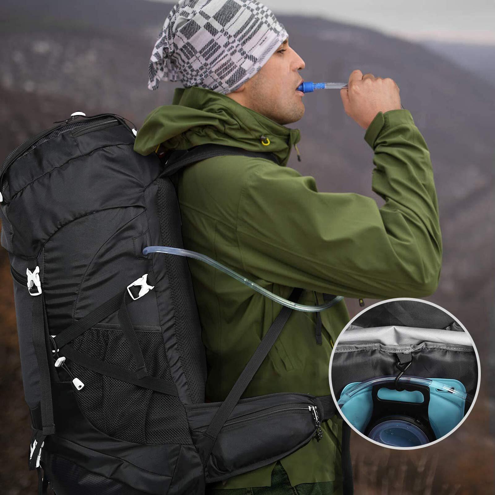 【多機能&高品質ファスナー】のバックパックの内部にはフックが付いて、ハイドレーションバックが装着できます。ザックを下ろさなくても歩きながらこまめに水分補給をすることができます(ハイドレーションパックは付属しません。)。パックの上部に天盖があります。ここのポケットにはすぐに取り出したい小物を収納するのに非常に便利です!天蓋のポケットが大きく使いやすいパックは満足度も高いです。高品質ファスナー、緊急用ホイッスル、反射テープなど安全を守る設置もありますので、あなたのベストのアウトドアパートナーになれます。