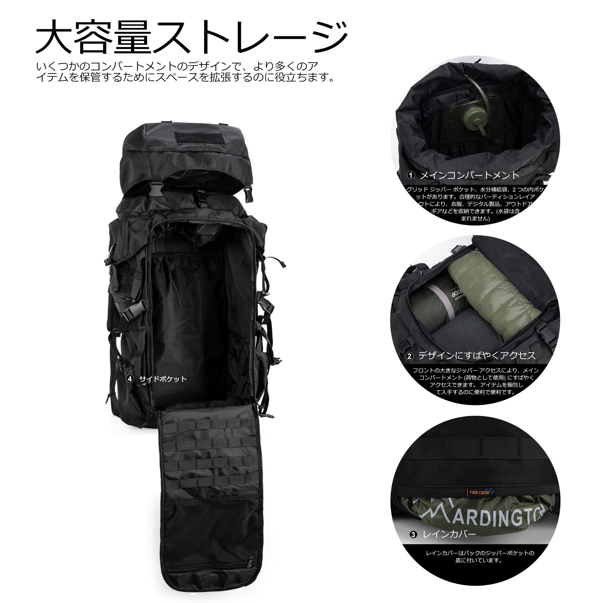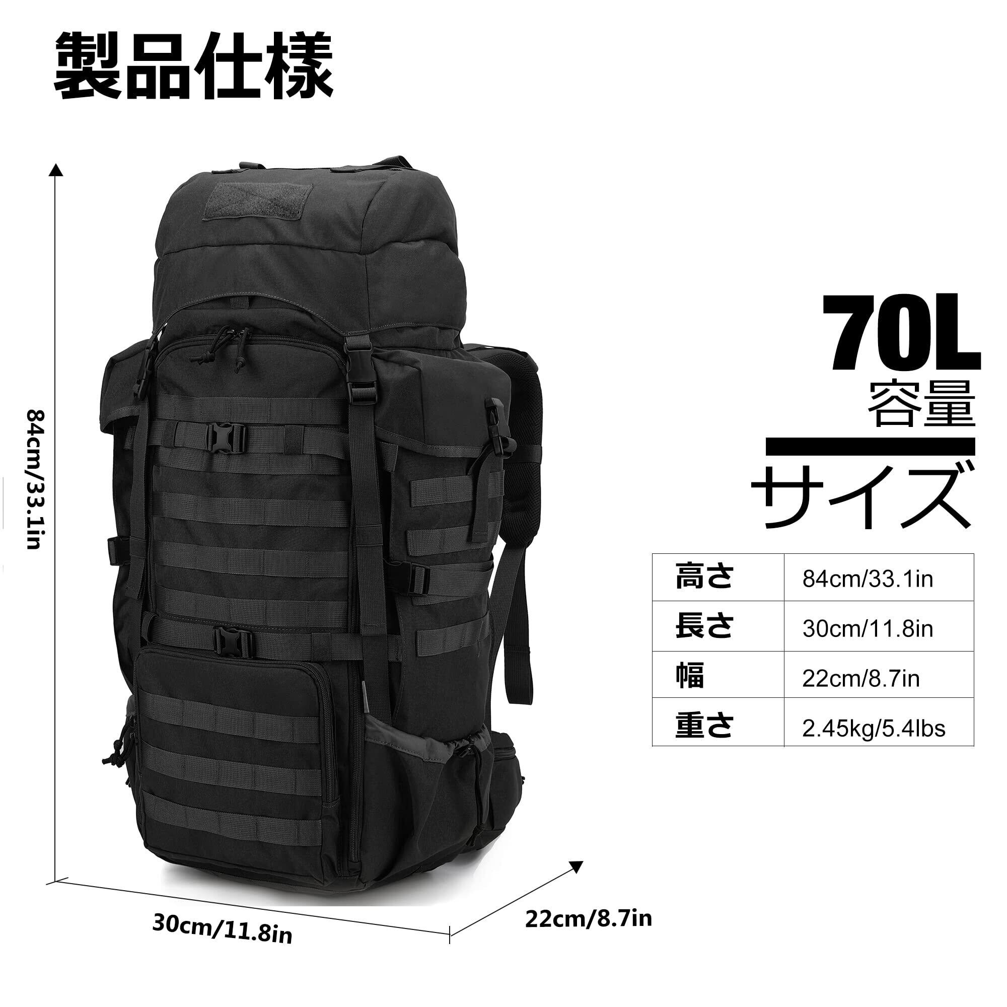 【新着商品】[Mardingtop] キャンプリュック 70L 大容量 ミリタリーバックパック S/M/L調節 ソロキャンプ 登山ザック タクティカルバッグ 大型 アウトドア 軍用 サバゲー