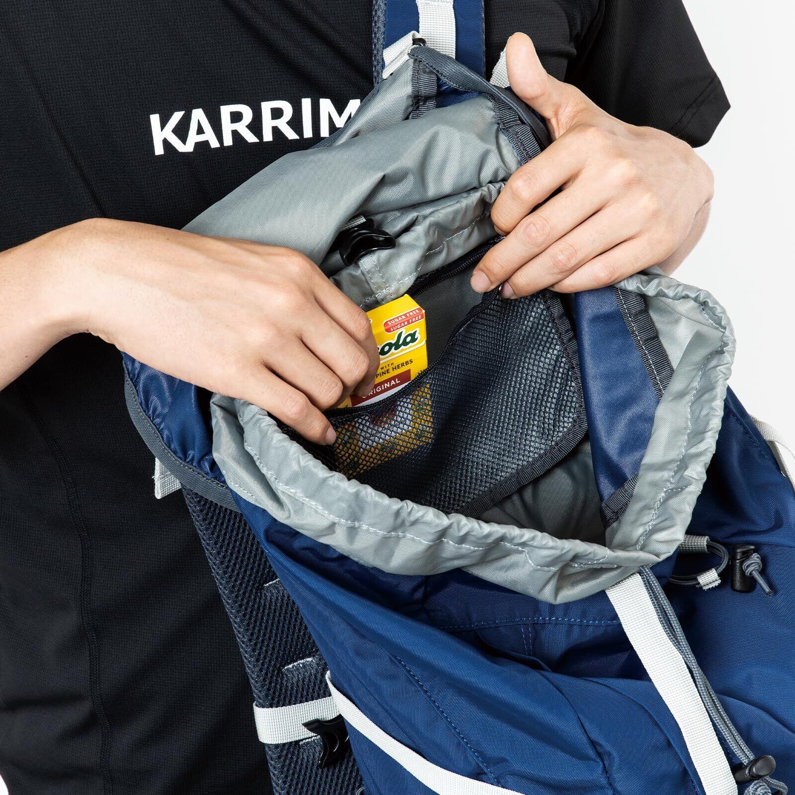 パッド入りヒップベルトにポケットを装備、大き目のワンドポケット、フロントポケットなどトレッキング用で活躍する機能を多数装備した機能充実の小型トップローダー。