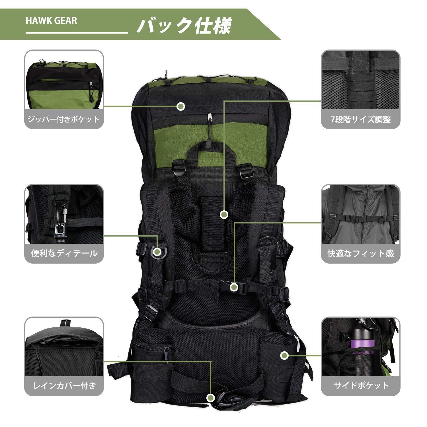 [HAWK GEAR(ホークギア)] バックパック 55L 防水 大容量 レインカバー ザック 長期旅行 防災 災害