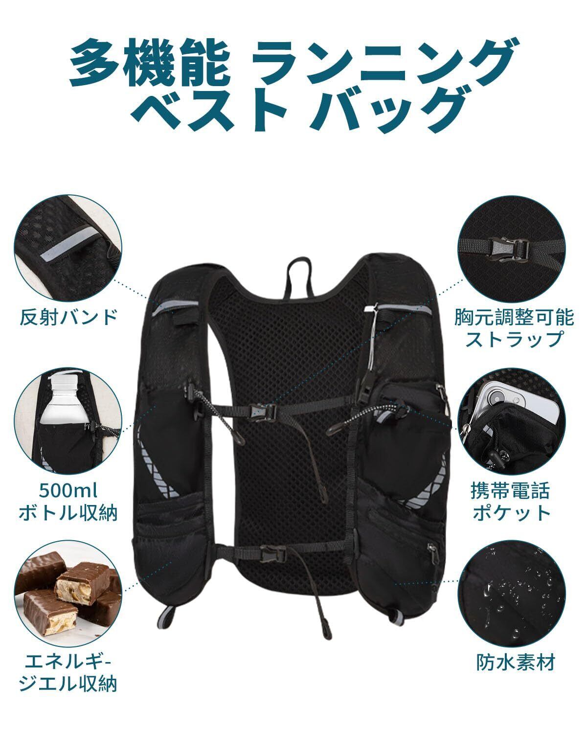 超軽量・万能ポケット: 超軽量設計ランニングバックパックの重量はわずか180グラムで、サイズ38*19cmで、500mlの折りたたみ式ウォーターボトル付きます。スポーツ用品を一気に携帯できる設計されたサイクリングバッグは収納性が抜群です!両サイドのストラップに500mlの水ボトルやキャンディ・チョコレートを収納でき、ジッパー付きのポケットは携帯電話を収納でき、後の2層メインコンパートメントに2L給水袋ホ儿ダ一を収納できます。