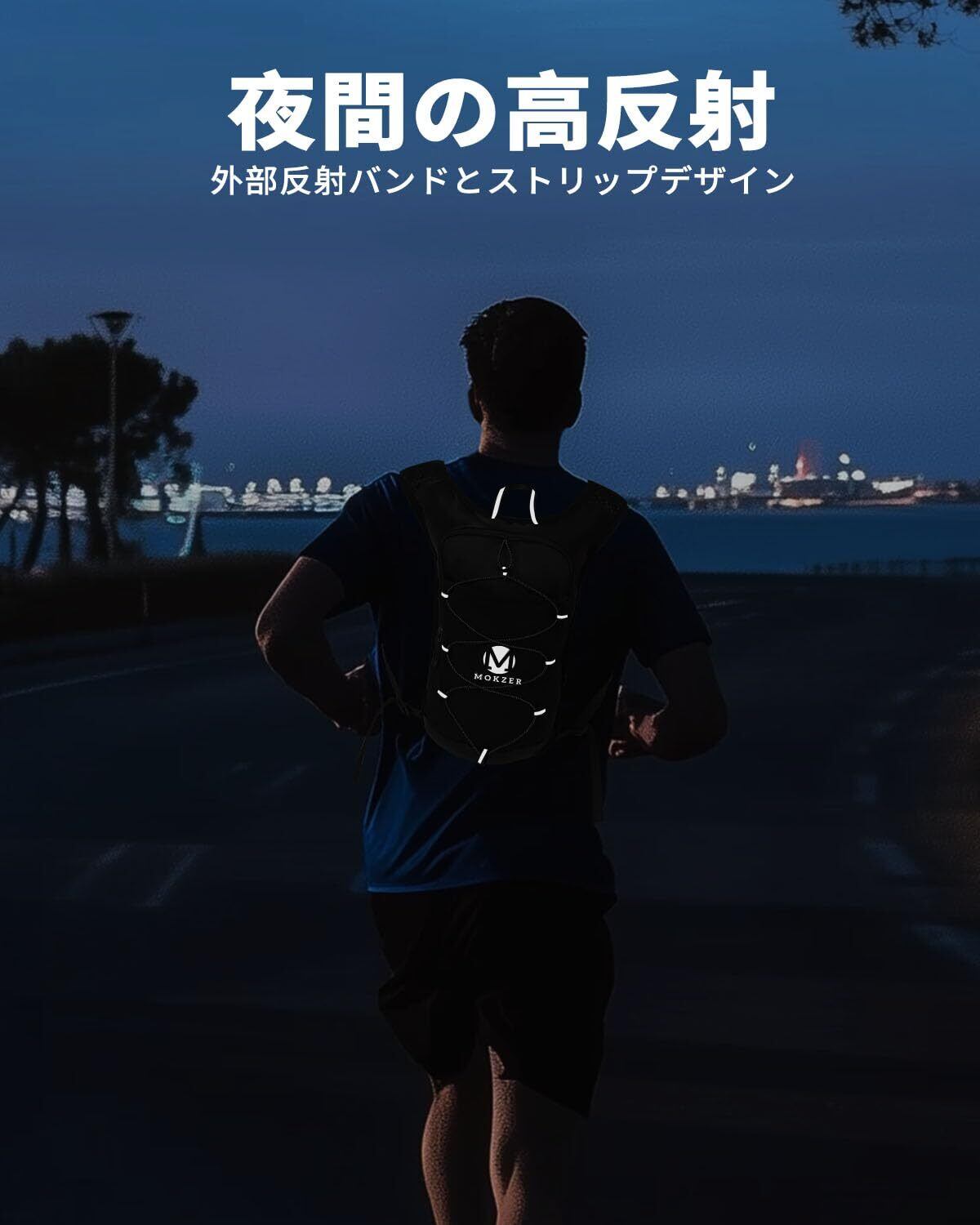 【在庫限り】[mokzer]ランニングバッグ 超軽量180g ランニングリュック トレイルラン マラソン ジョギング サイクリング 小さめ ハイドレーションバッグ 通気防水 自転車レース 光反射ストラップ付 豊かなポケット 男女/子供兼用 (グレー)