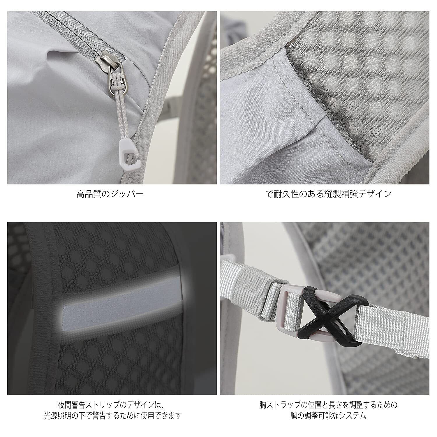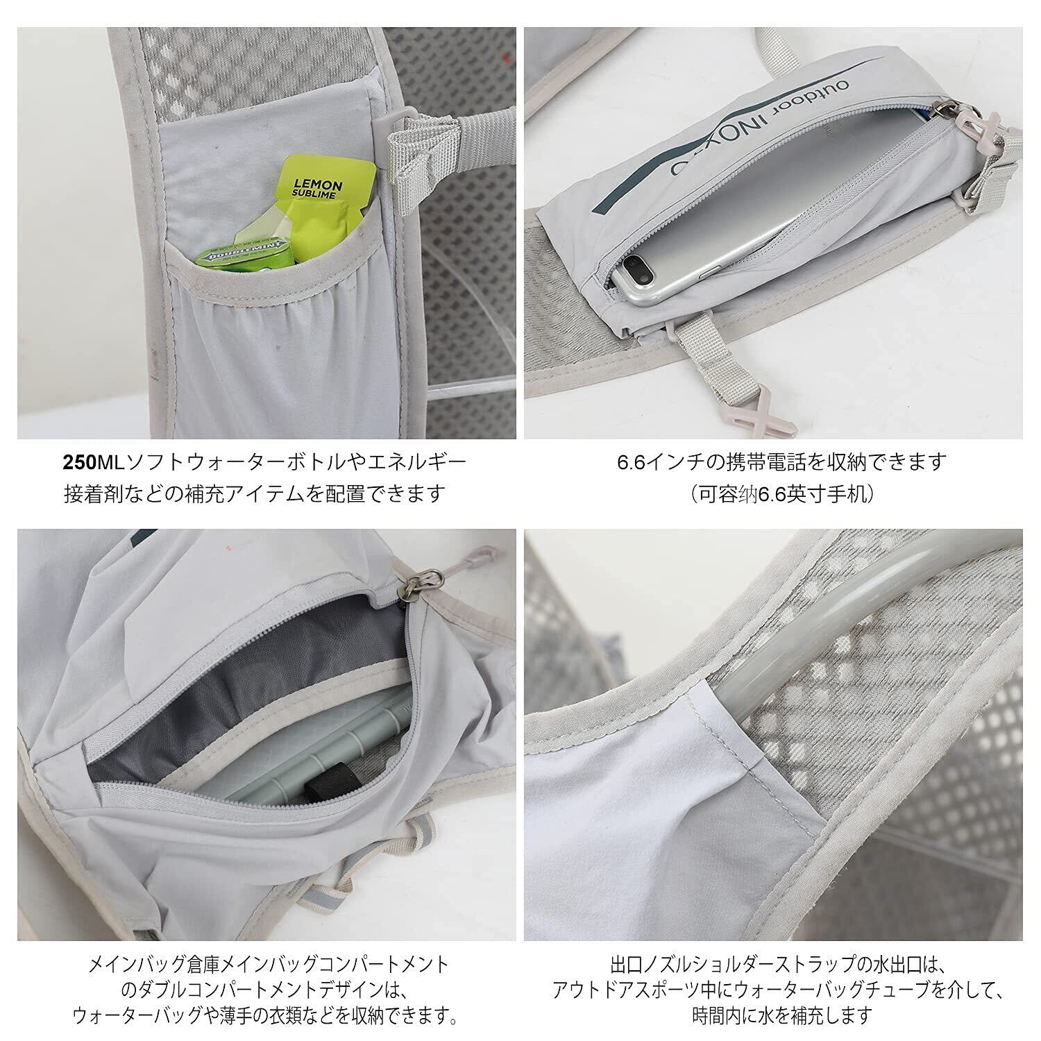 【超軽量設計】高品質のナイロン素材と超軽量設計により、より快適に走ります。 INOXTOスポーツバックパックの重量はわずか140グラムで、メインコンパートメントに1.5リットルを収納できます。 また、左右のベルトには250mlのペットボトルを収納できるポケットが付いています。 メインポケットの横には携帯電話やアイテムを収納できるポケットがあり、音楽を聴きながらジョギングができます!