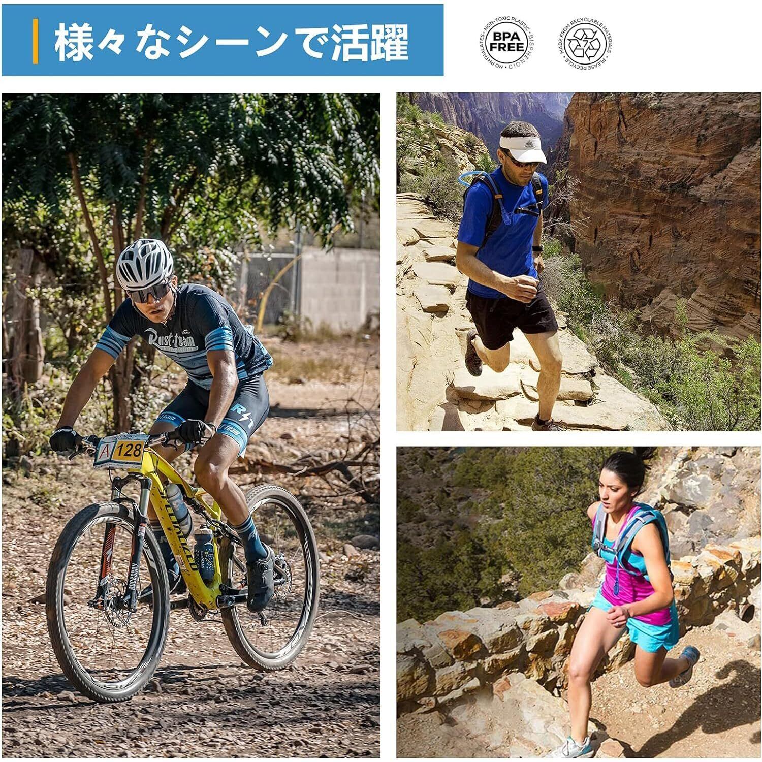 チューブの部分着脱可能、洗浄と収納が便利 - ドリンキングチューブの着脱が素早く簡単になり、洗浄と収納が便利です。チューブは肩の上からかけやすくねじれにくいのも特徴、走行中でも邪魔にならないとても便利に使用できます。貯水部は2Lの容量、サイズは35.5*17.5cmで、ほぼ全てのハイドレーションパックに対応でき、男女兼用のタイプです。山登り、サイクリング、ランニング、マラソンなど様々な用途にご使用頂けます。