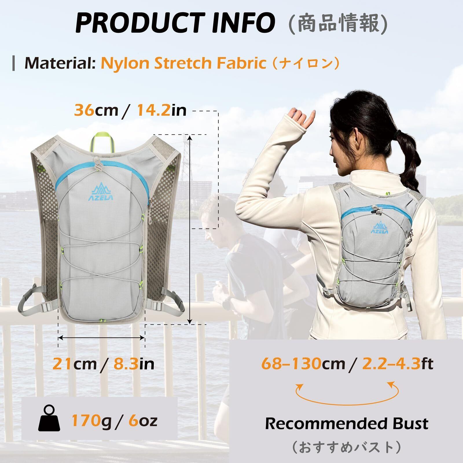 【超軽量で快適な着け心地】約170gの軽量設計で、長時間の使用でも肩や背中への負担を最小限に。ランやサイクリングの動きを妨げず、アウトドアや街歩きでも快適に使えます