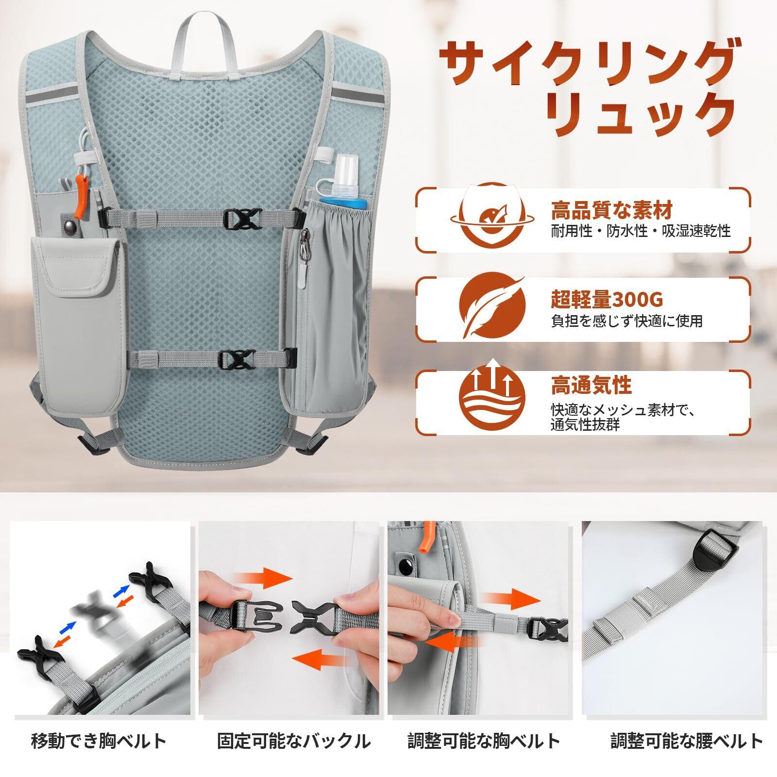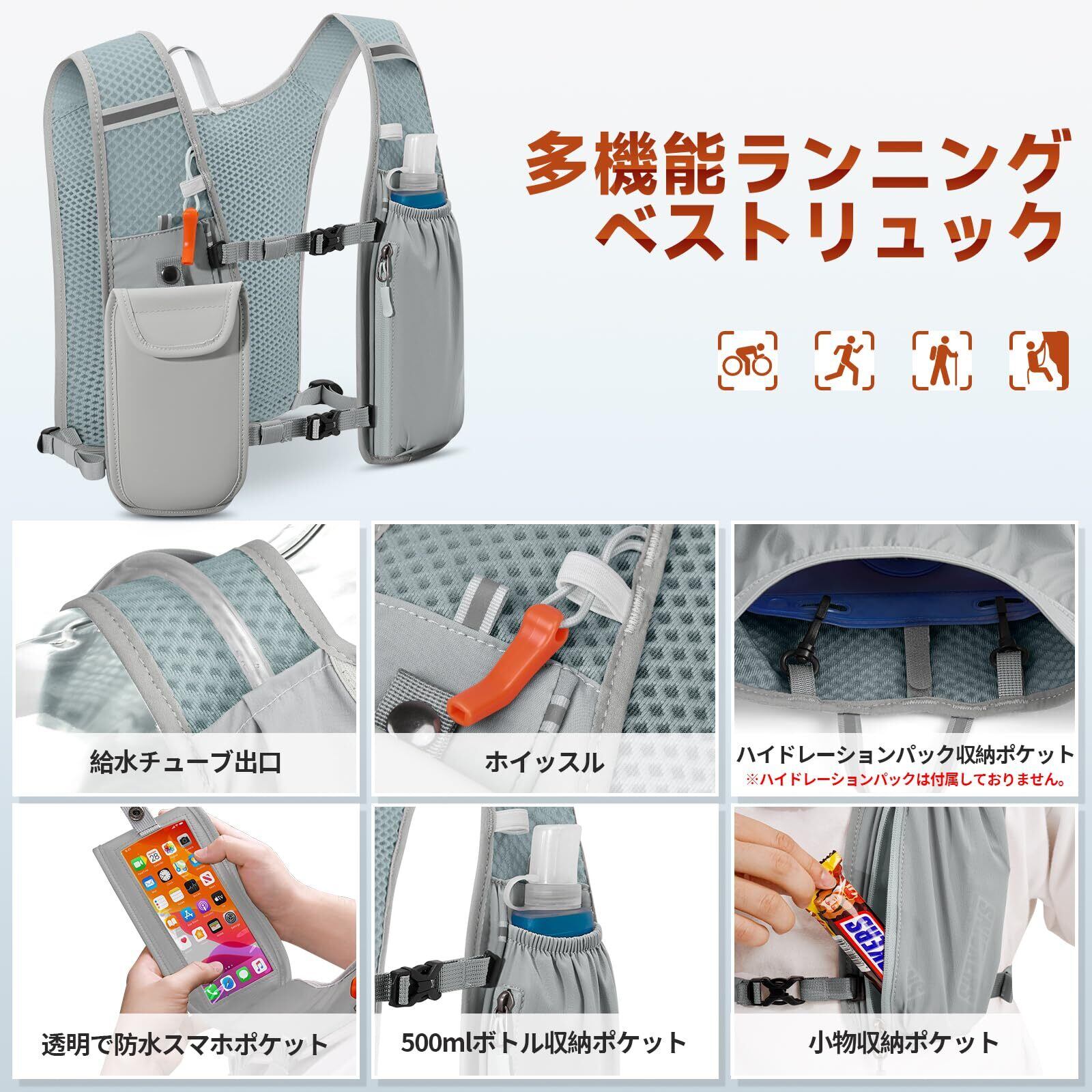 [RAINSMORE]ランニング リュック バッグ 超軽量 マラソン サイクリング リュック ランニングベスト 揺れない トレラン ザック ハイドレーション スポーツ 自転車 登山 防水 通気性 遠足 アウトドア ジョギング トレーニング ハイキングトレイル 釣り 反射ストラップ 男女兼用