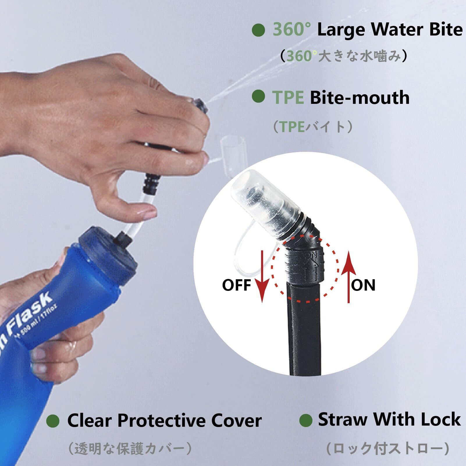 ️【飲みやすい】--スポーツボトルはTPU製飲み口を引き上げ(ストロー付きの水筒)、口で噛むだけの動きで簡単に飲むことができます。走るスピードをキープして前を向いたまま飲むことが可能です