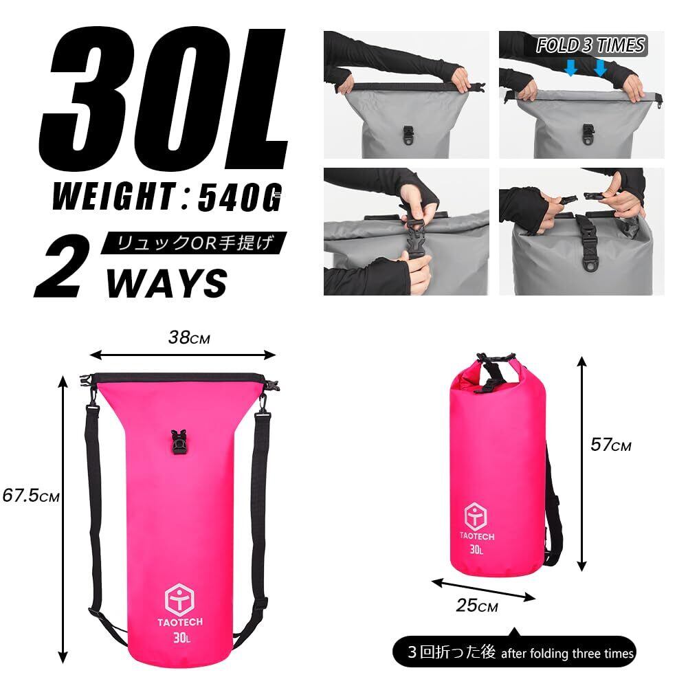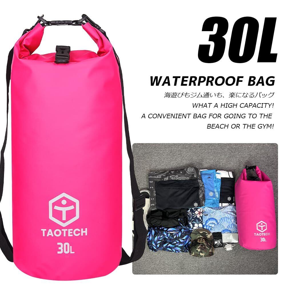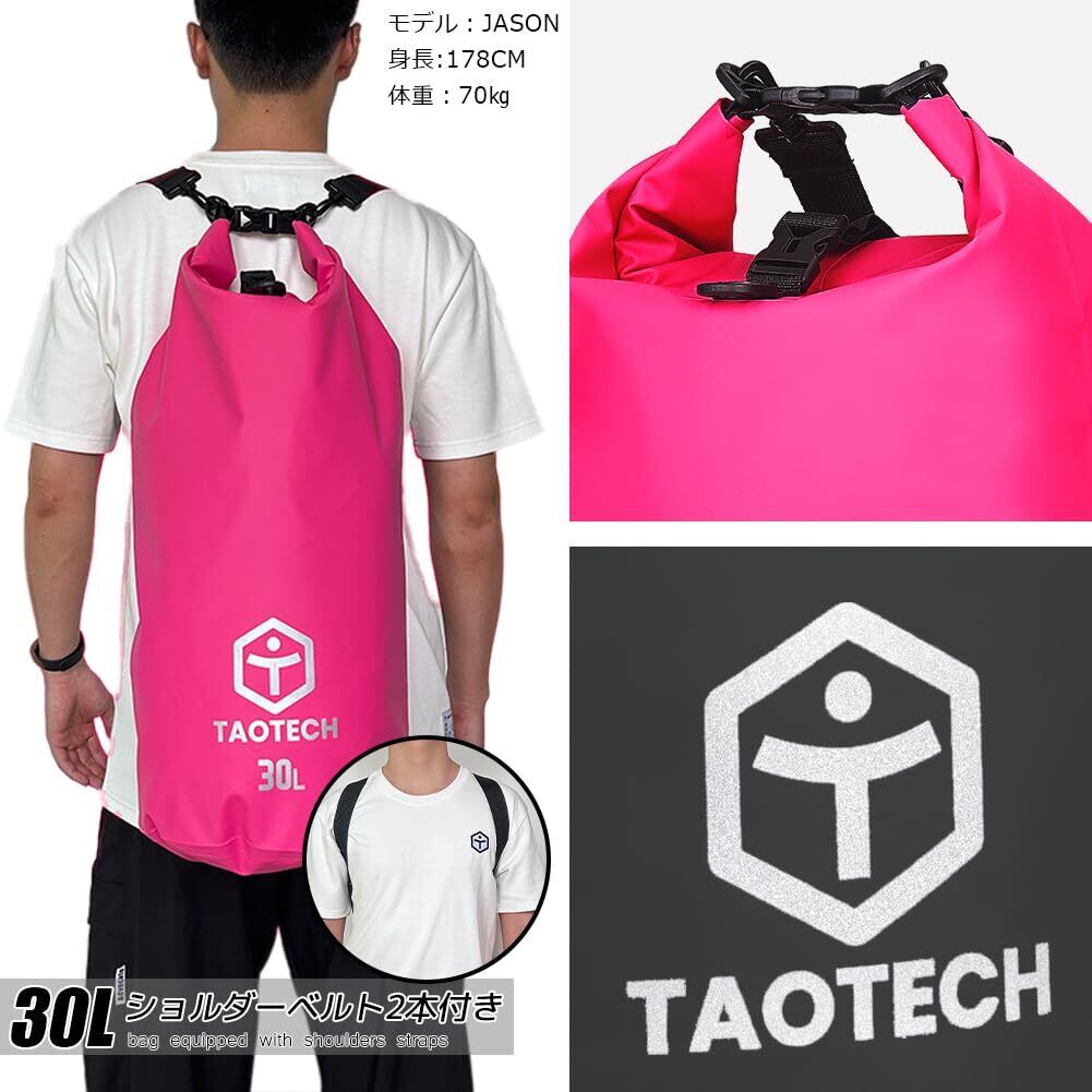 【数量限定】TaoTech 筒型 防水バッグ ドライバッグ 防水 ドラム型 スポーツバッグ アウトドア 海 プール 川遊び 釣り スノーボード 男女兼用(ブラック, 30L)