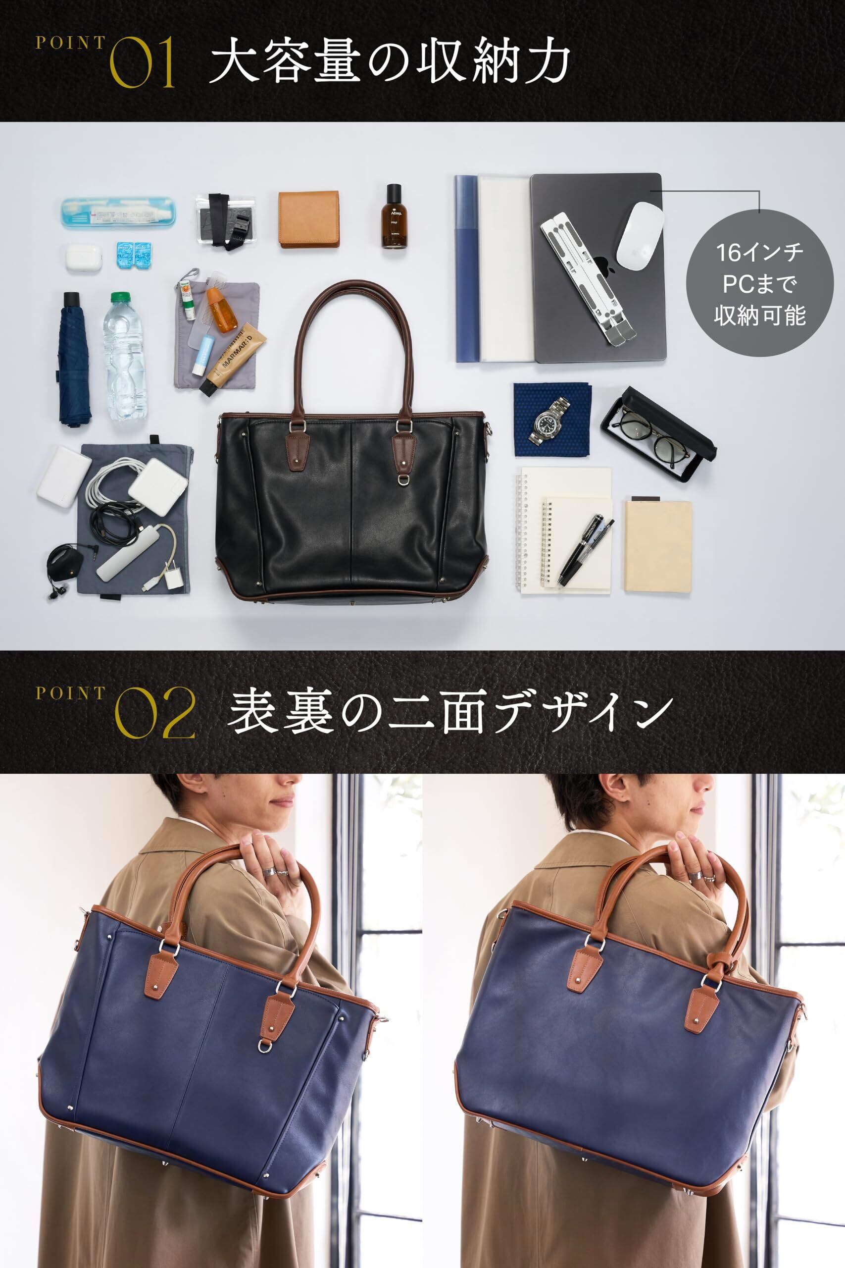 【人気商品】[グレヴィオ] ON/OFF使いたくなる上品トート 一流の鞄職人が作る ビジネスバッグ PCポケット 3way ビジネストートバッグ トートバッグ 大容量 自立 メンズ ビジネス 通勤 通学 PC 出張