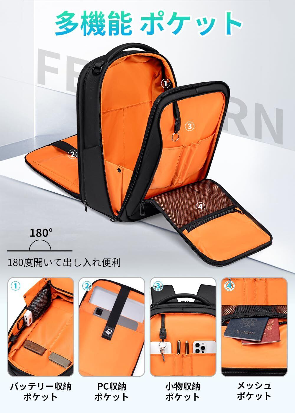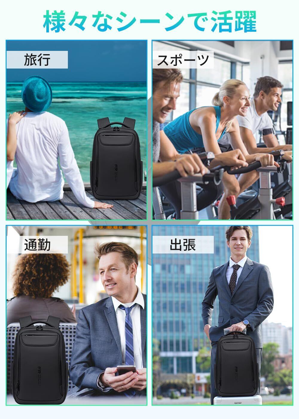 [FENRUIEN] メンズビジネスバックパック、大容量、防水、盗難防止ノートパソコンバッグ、15.6インチコンピューター対応