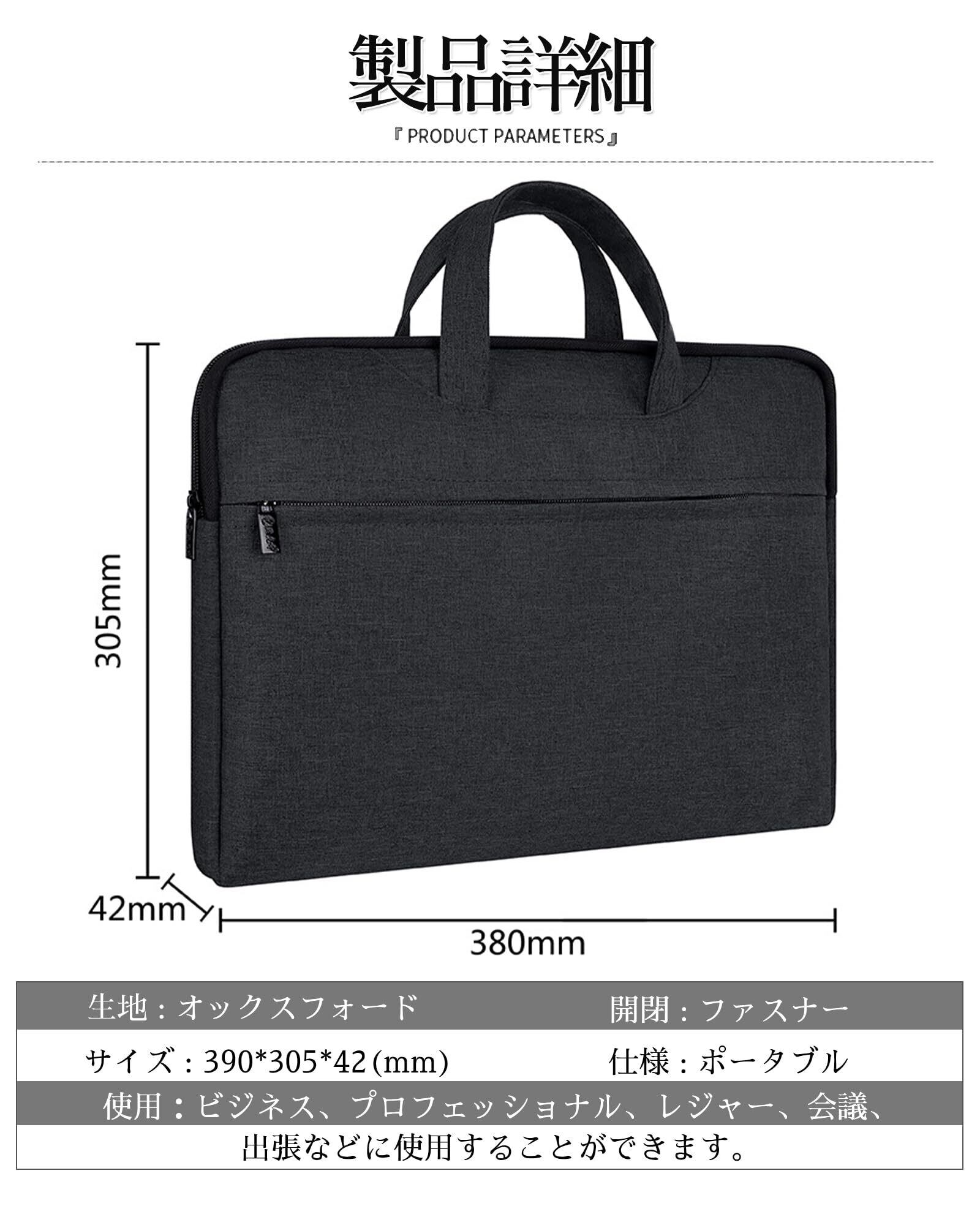 【収納力】 約横38CM×縦30㎝×マチ3.5㎝、A4サイズ収納、ビジネスノートPC(15インチ)の収納可能、折り畳み傘も入れられます。