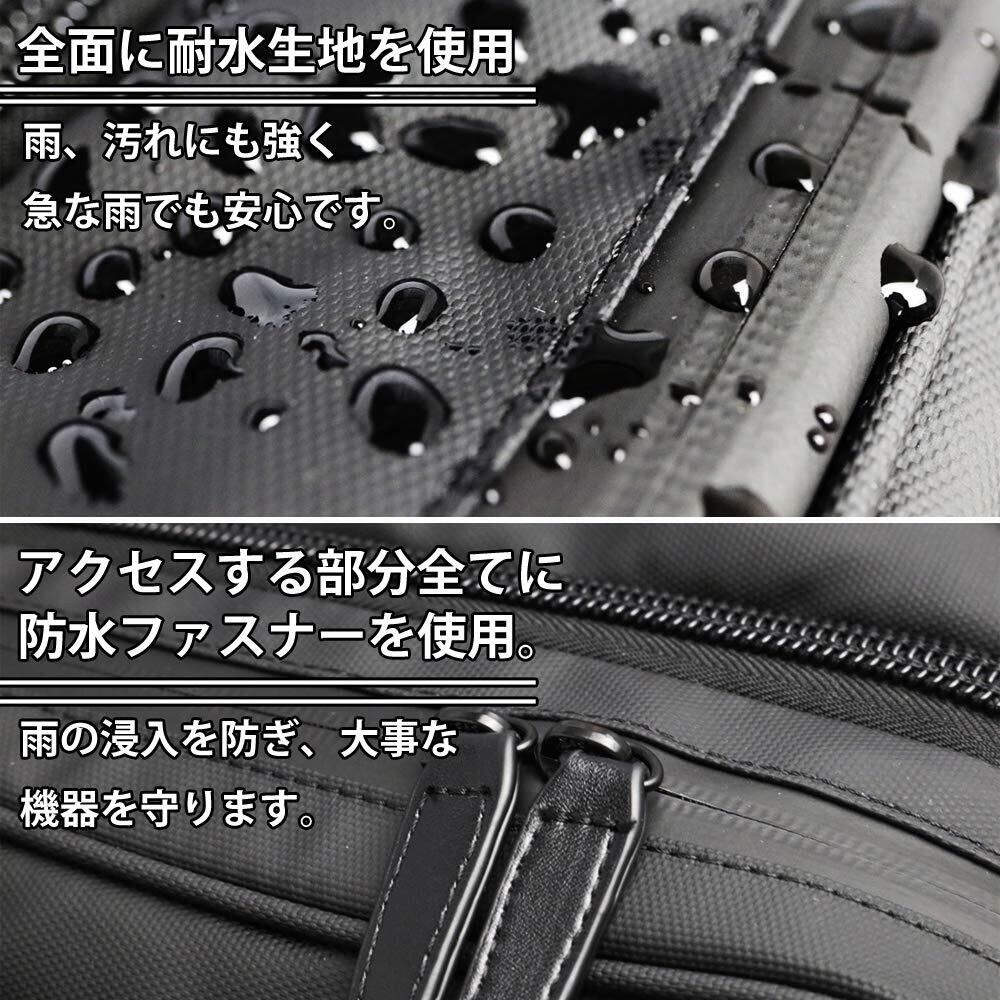 全面に耐水生地を使用。さらに開口部すべてに止水ファスナーを使用することで、内部への水の侵入を防ぎ、大事な書類、PCなどを急な雨から守ります。