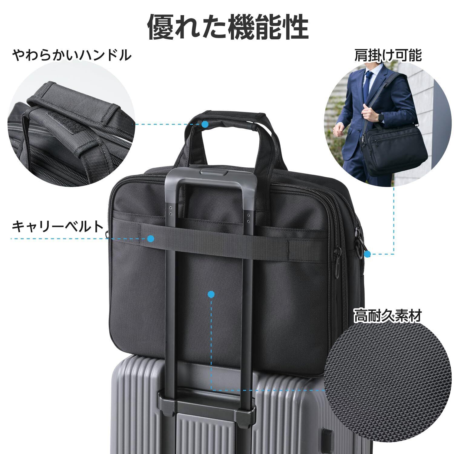エレコム ビジネスバッグ ショルダーバッグ マチ拡張機能付き 撥水加工 ~15.6インチ 大容量 23L ブラック BM-XCBEX01BK