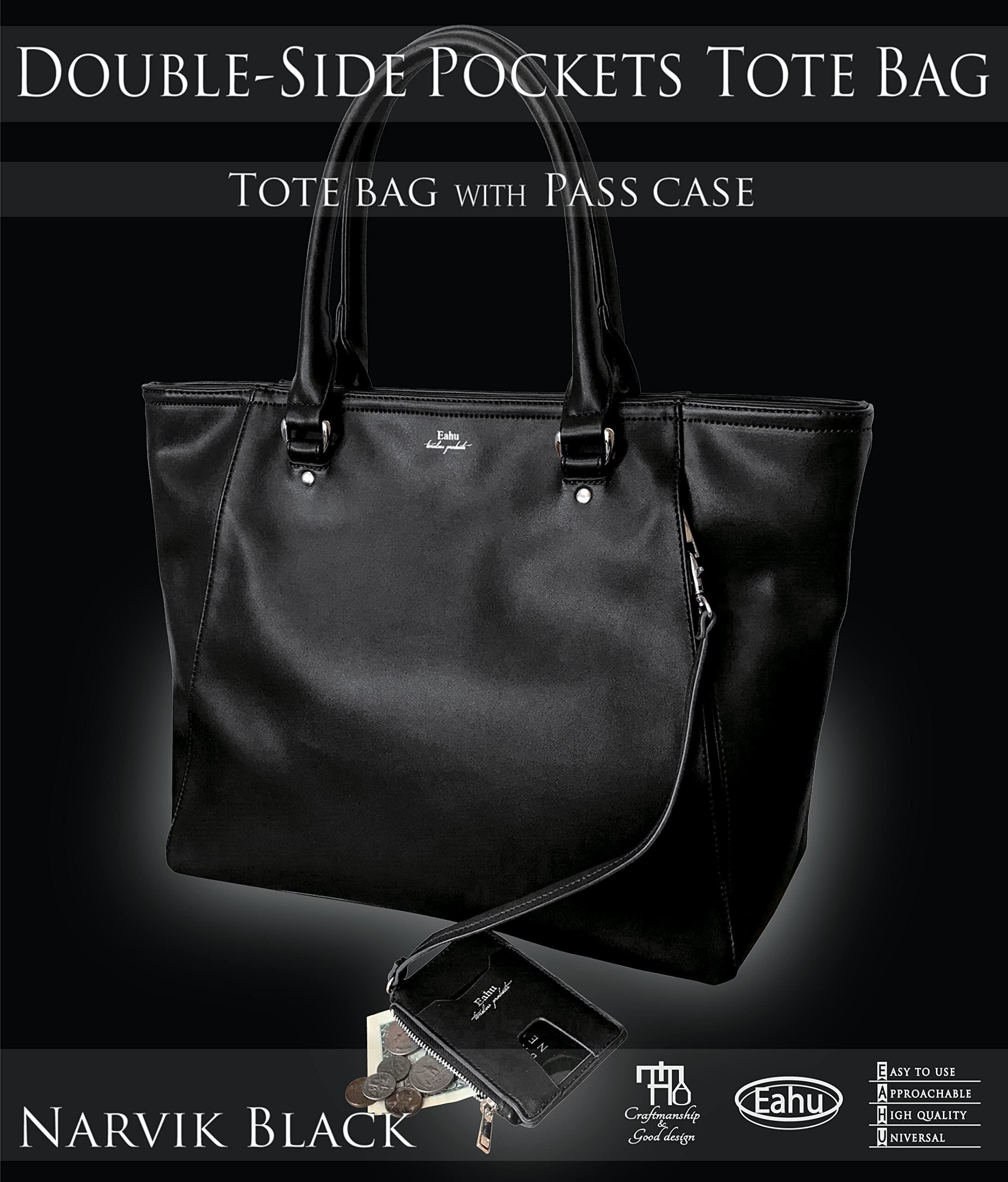 【安心】Eahuの商品には全て返金・返品が付いております。お買上げ頂いた商品を手にしてみて、お色やサイズ感などお気に召さなかった場合でものガイドラインに従い到着後30日間は無料で返品交換等の対応を承っておりますのでご安心してお買い求め下さい。【完全自立型】トートバッグに荷物が入っていない状態でも自立します。【パスケース付き】取外し可能なパスケースが付属しています。パスケースにはファスナーポケットが付いており小銭や切符などの小物の収納が可能です。