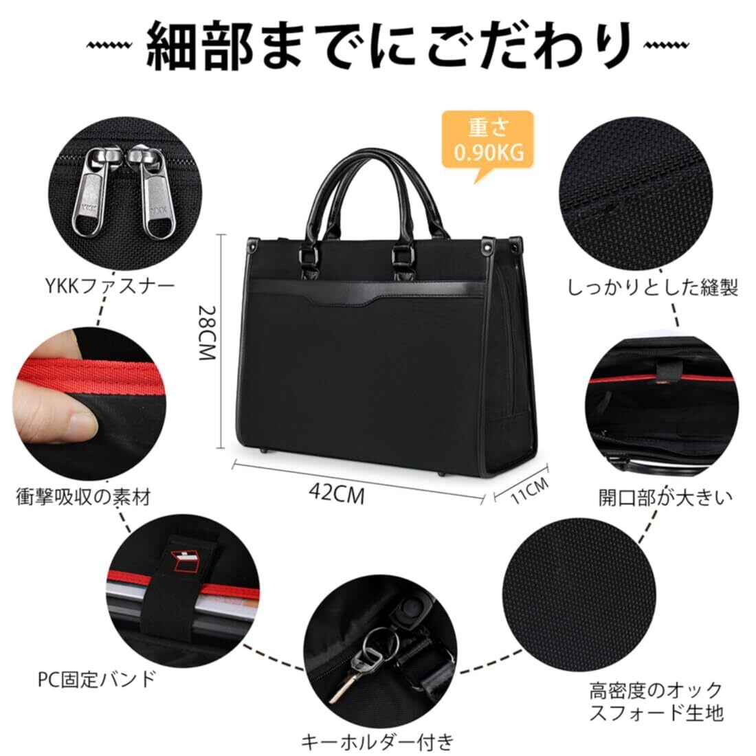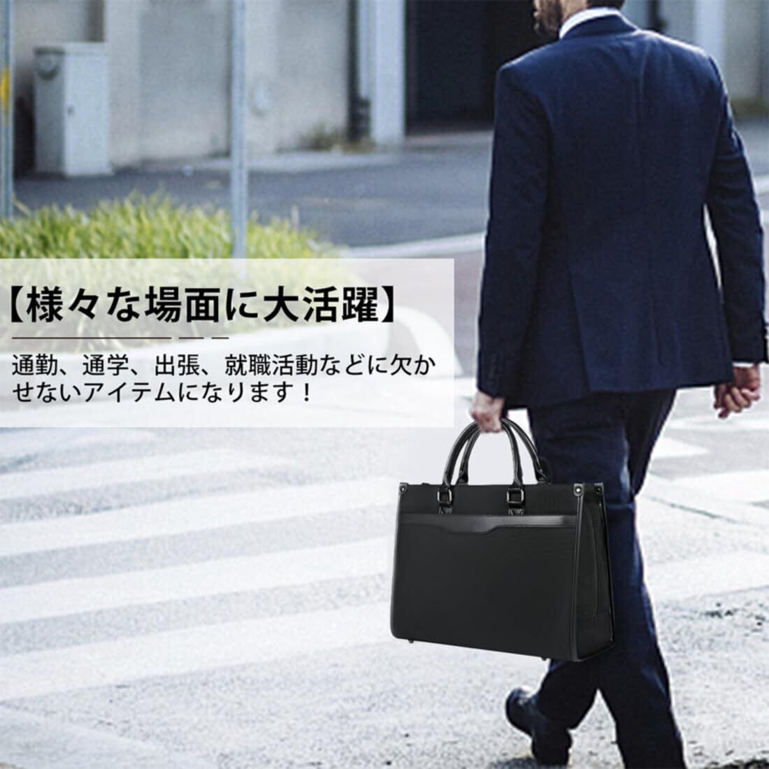 【オックスフォード生地&撥水性加工】ビジネスバッグは高密度のオックスフォード生地で作り、耐久性と摩耗性に優れて、汚れに強く、扱いやすいです。表面には撥水性加工が施して、外出先で小雨が降っても、バッグの中のものは濡れません。肩掛けと持ち手部分の金具もしっかりしていて、高級感が溢れる上品です。