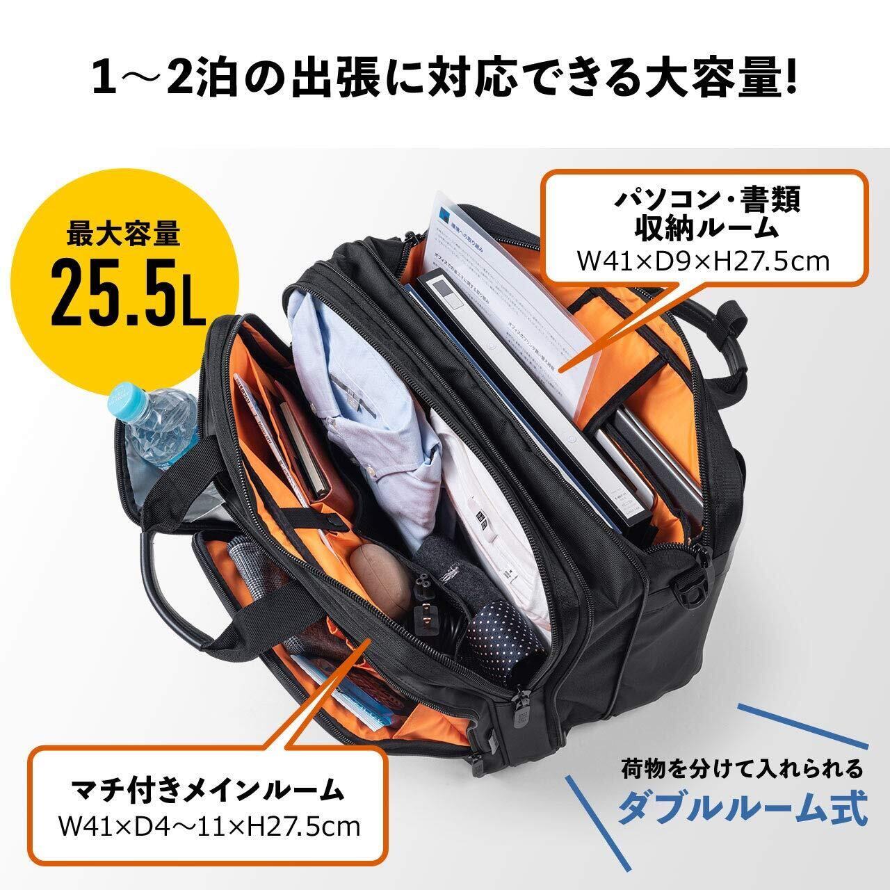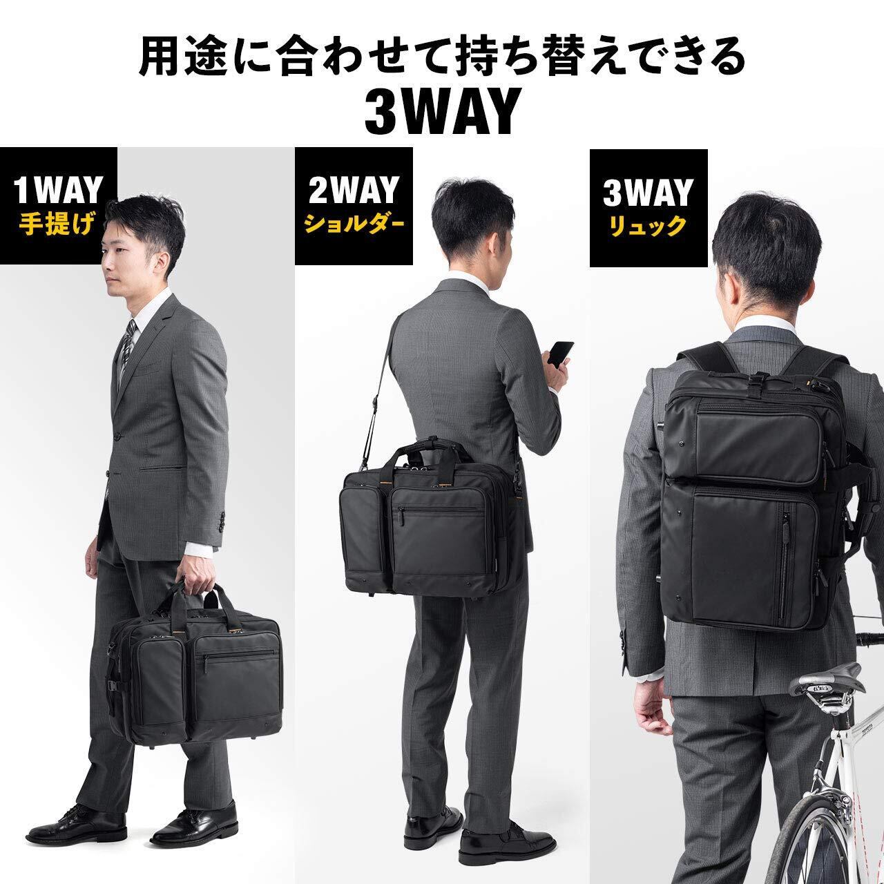 【在庫限り】[サンワダイレクト] ビジネスバッグ 3WAY 大容量 15.6型PC/A4収納 多ポケット 鍵付 マチ拡張 25.5L 200-BAG170BK