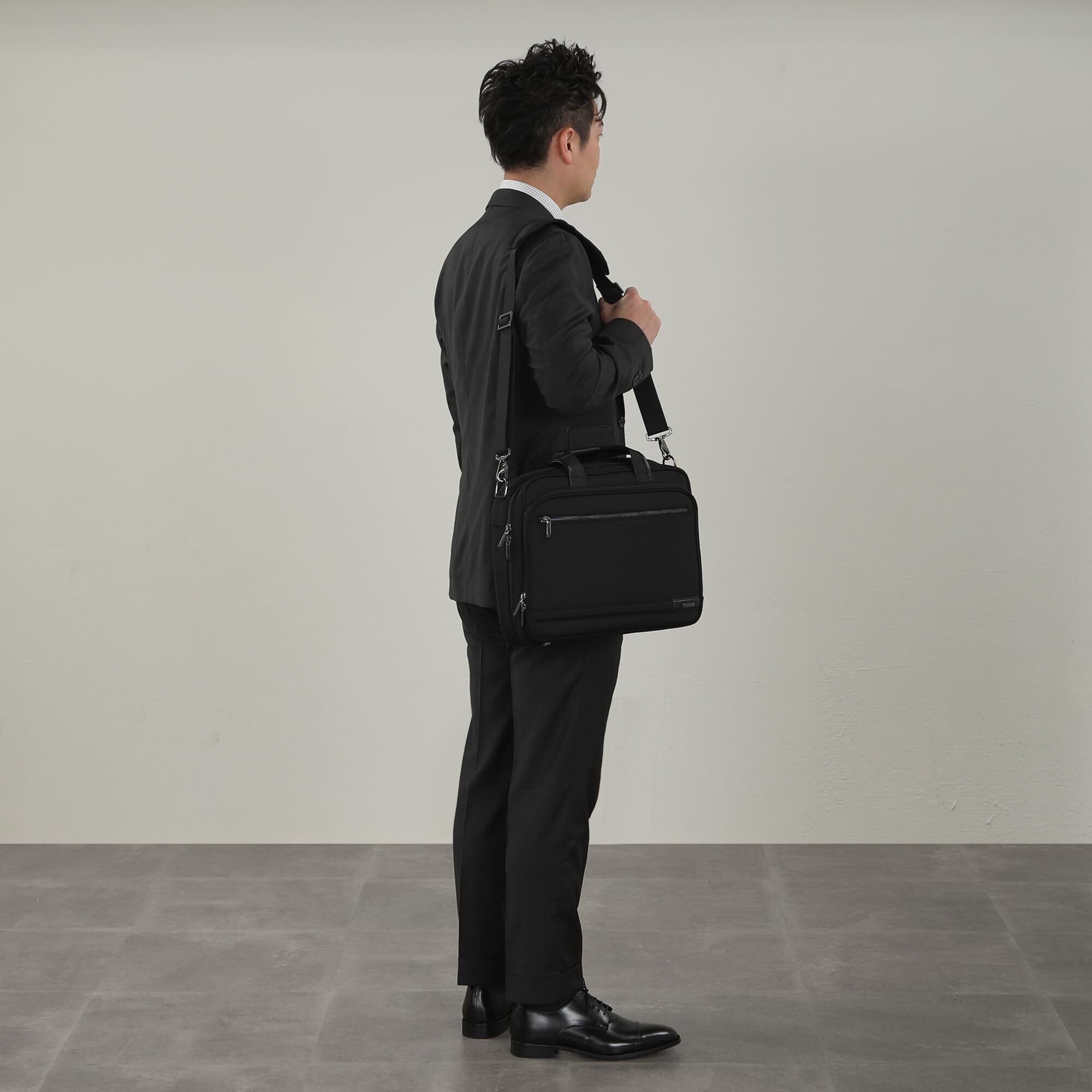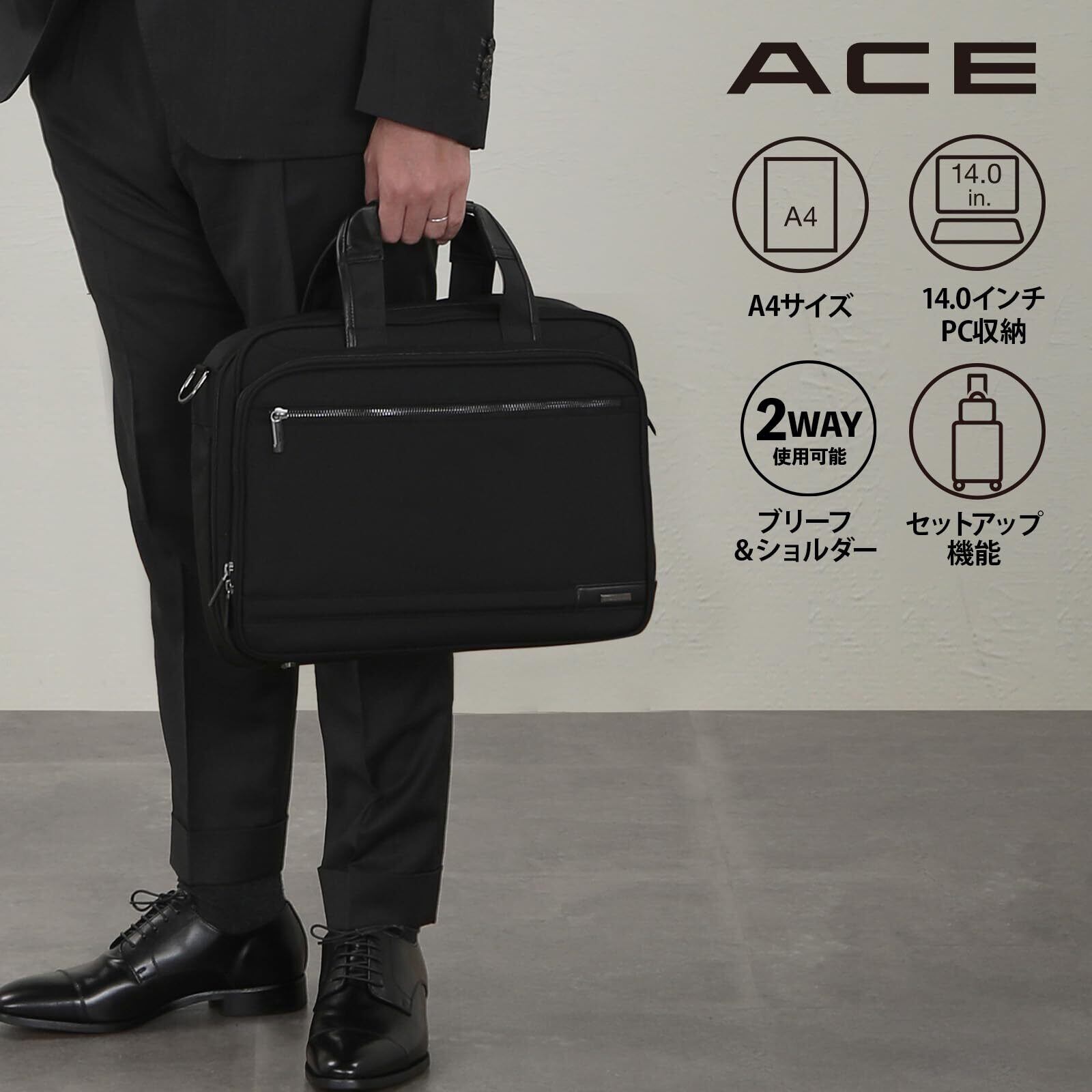 [ACE] ビジネスバッグ メンズ 2way 【イグニス2】 就活 A4対応 14インチPC収納可 薄型 セットアップ可 ブリーフケース ブラック