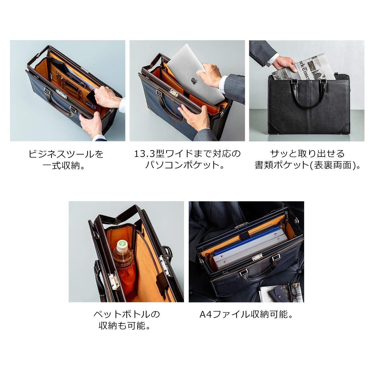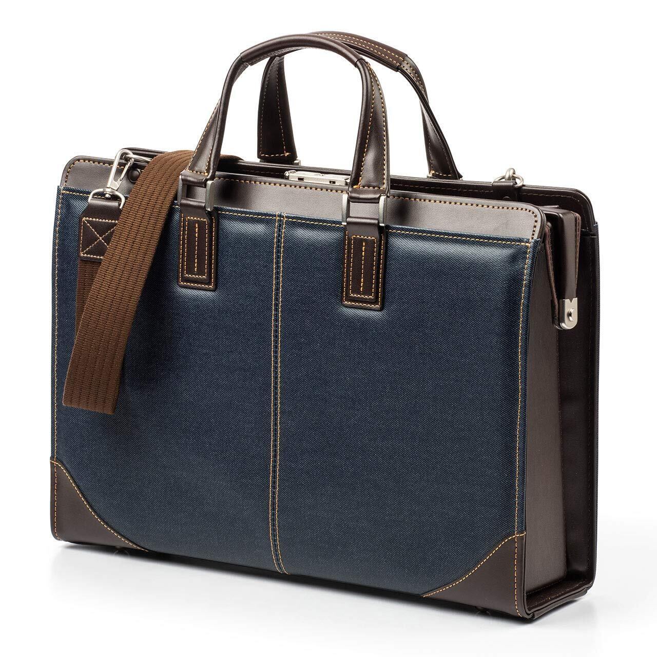 [サンワダイレクト] 日本製 ダレスバッグ 豊岡製鞄 × 岡山デニム 鍵付 ショルダー/手提げ 13.3型ワイドPC ネイビー 200-BAG145NV