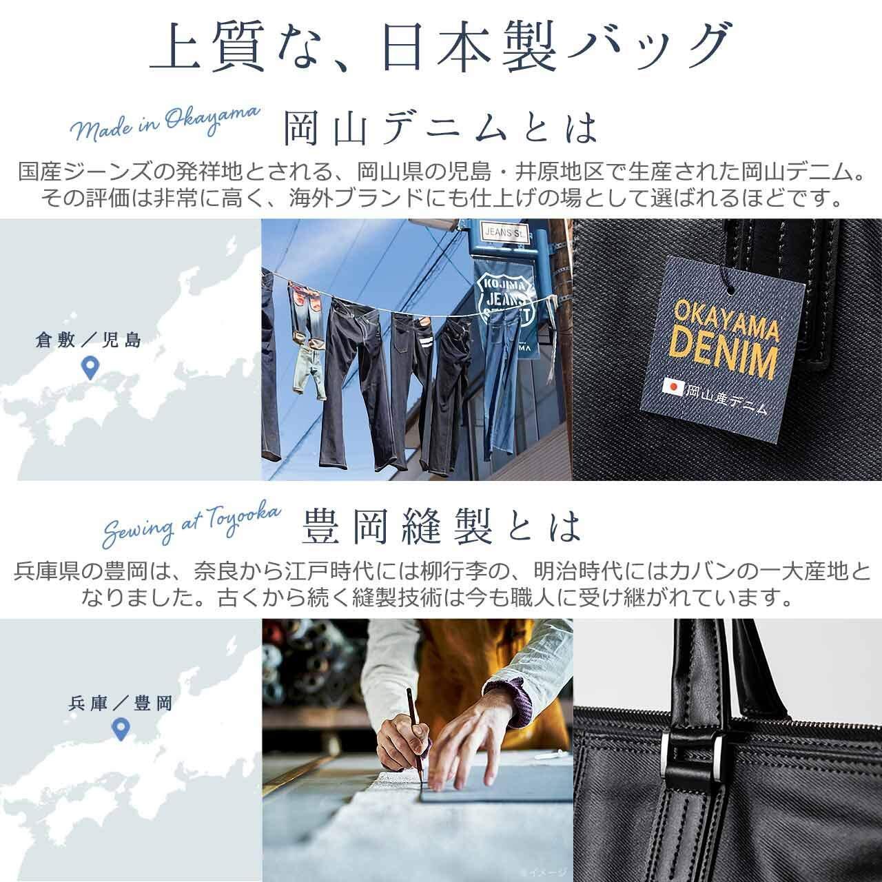 岡山デニムを使用し豊岡で制作した日本製の ビジネスバッグ です。国産ジーンズの発祥地とされる、岡山産の児島デニムを使用した おしゃれ な バッグ です。