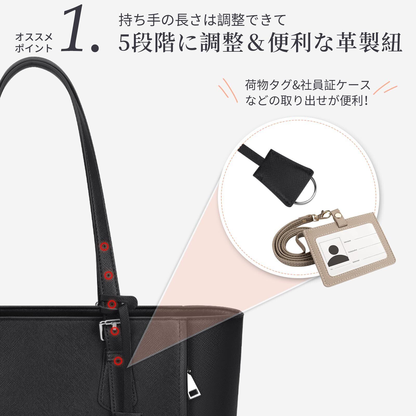 『 習慣を着眼し、シンプルな設計 』:❶持ち手のところがほつけたり、剥げたりすることを防ぐため、外部にPU素材を再度包んで、その強度が上がれる。➋外にキーチャーム付き、荷物タグ&社員証ケースなどの取り出せが便利。➌お客様の声を反映し、外部の一面はファスナーポケットを2つ増加します。普段よく使うものはここに置くのが最適。❹家に着いた時、ごちゃごちゃしたバッグの中で鍵を探すのは面倒でしょう。この光反射機能付きキーチャームは助かります。