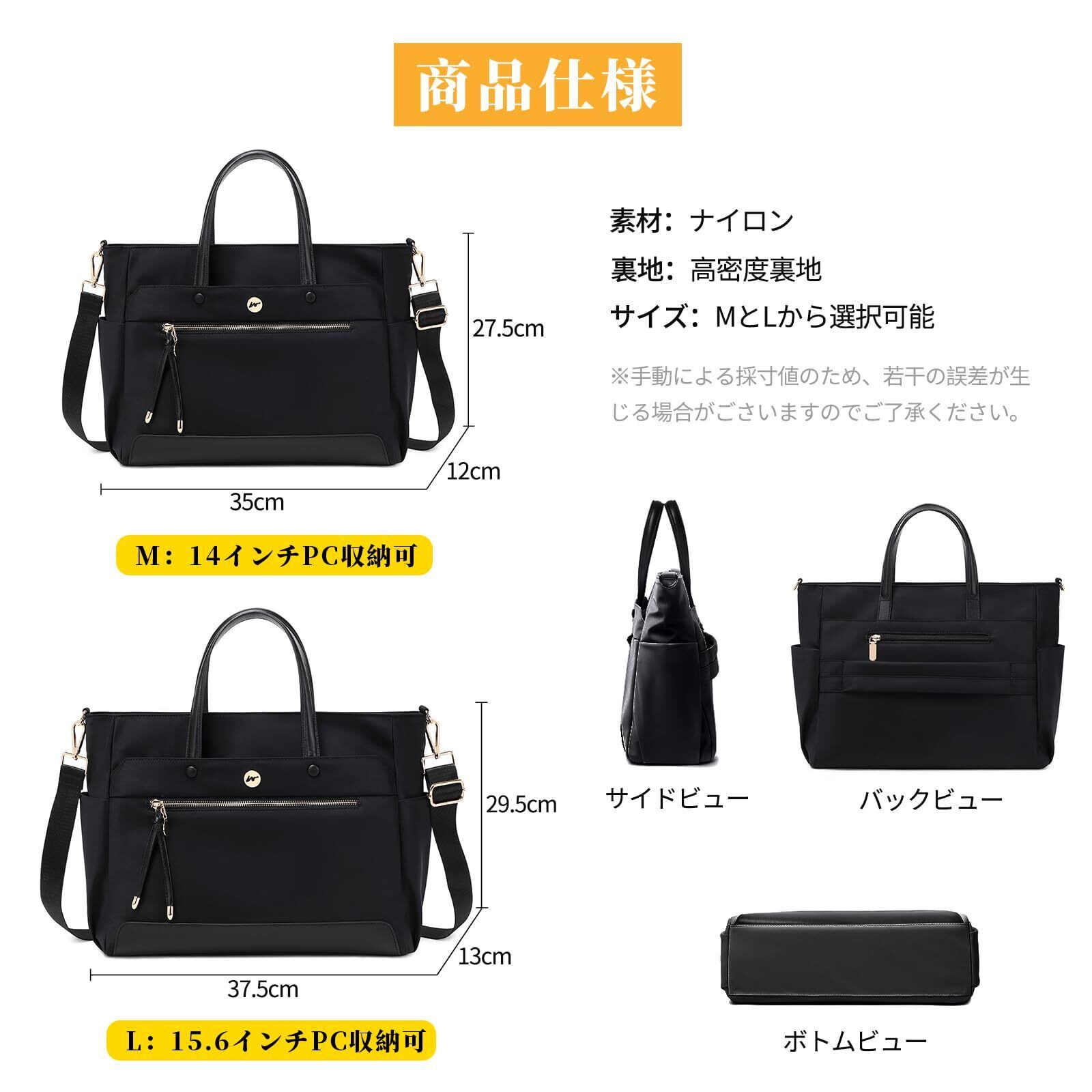 [SHCER] ビジネストート レディース 2WAY 軽量 【おしゃれ】 大容量 A4書類 14インチ/15.6インチPC対応 撥水加工 多ポケット 収納力 就活 通勤 フォーマル対応
