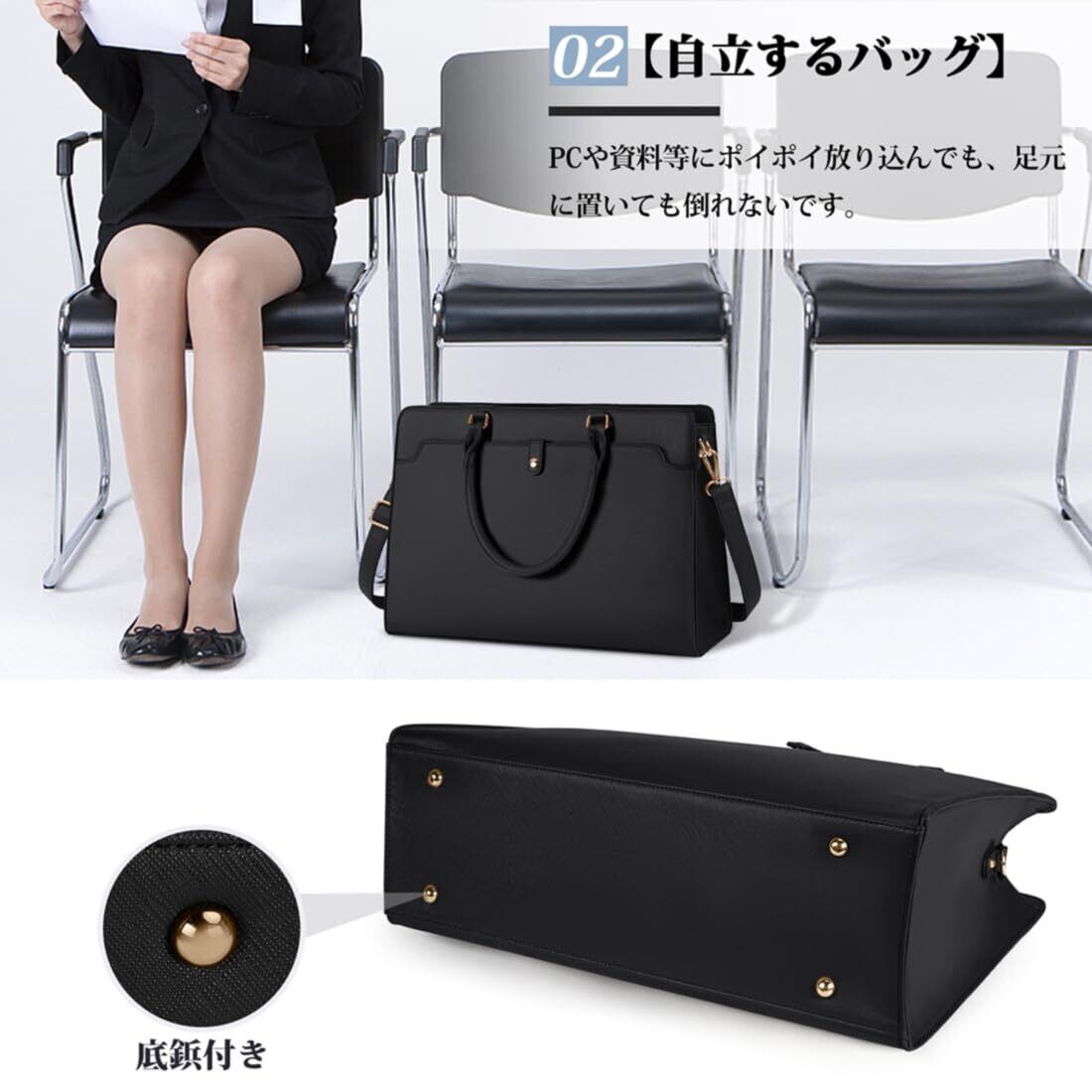 [RAINSMORE] トートバッグ レディース ビジネスバッグ 大容量 リクルートバッグ A4対応 PCバッグ 15.6インチ タブレット収納可 自立 ショルダー 3way 防撥水 通勤 出張 通学 就活 仕分け 外ポケット 肩掛け ブラック