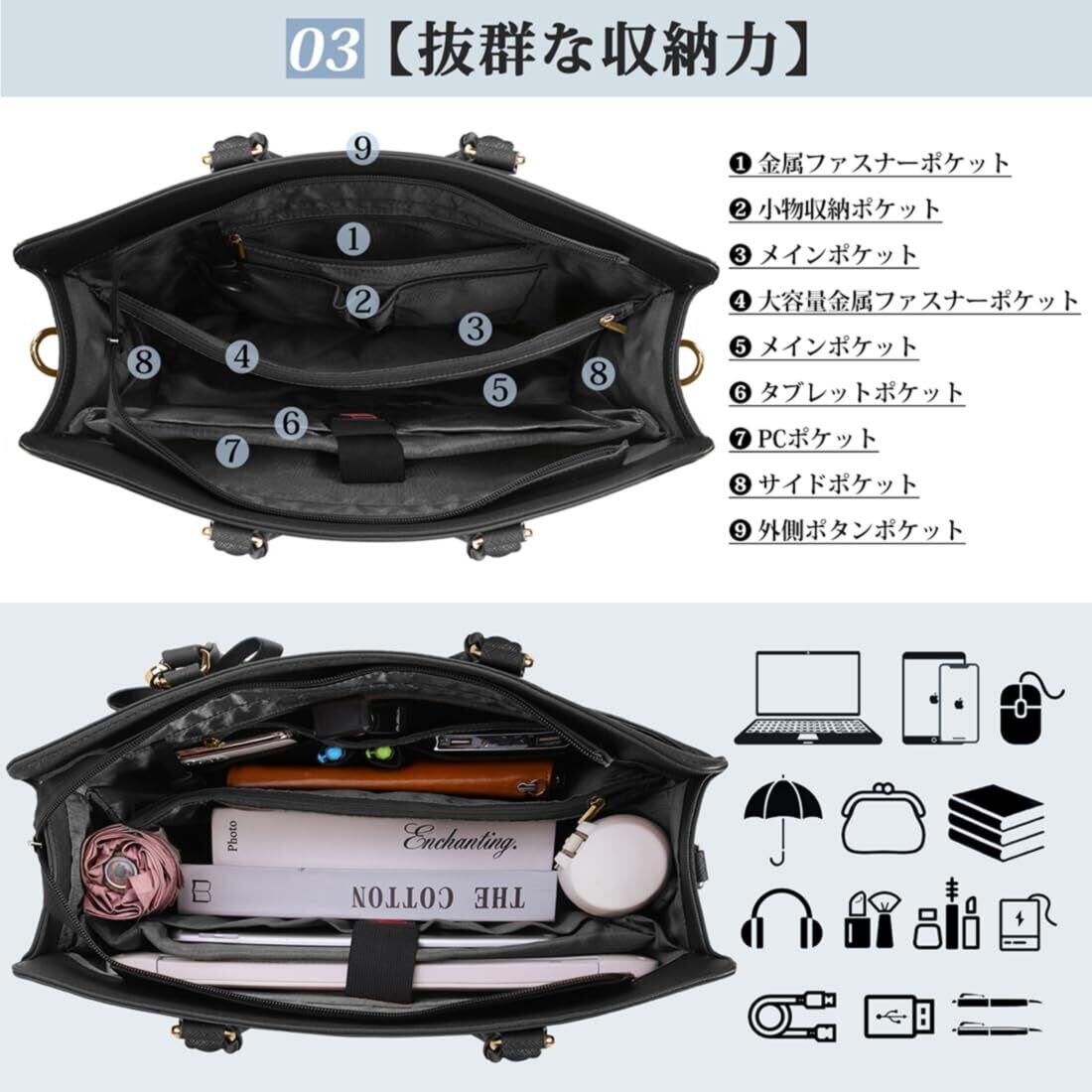 【数量限定】[RAINSMORE] トートバッグ レディース ビジネスバッグ 大容量 リクルートバッグ A4対応 PCバッグ 15.6インチ タブレット収納可 自立 ショルダー 3way 防撥水 通勤 出張 通学 就活 仕分け 外ポケット 肩掛け ブラック