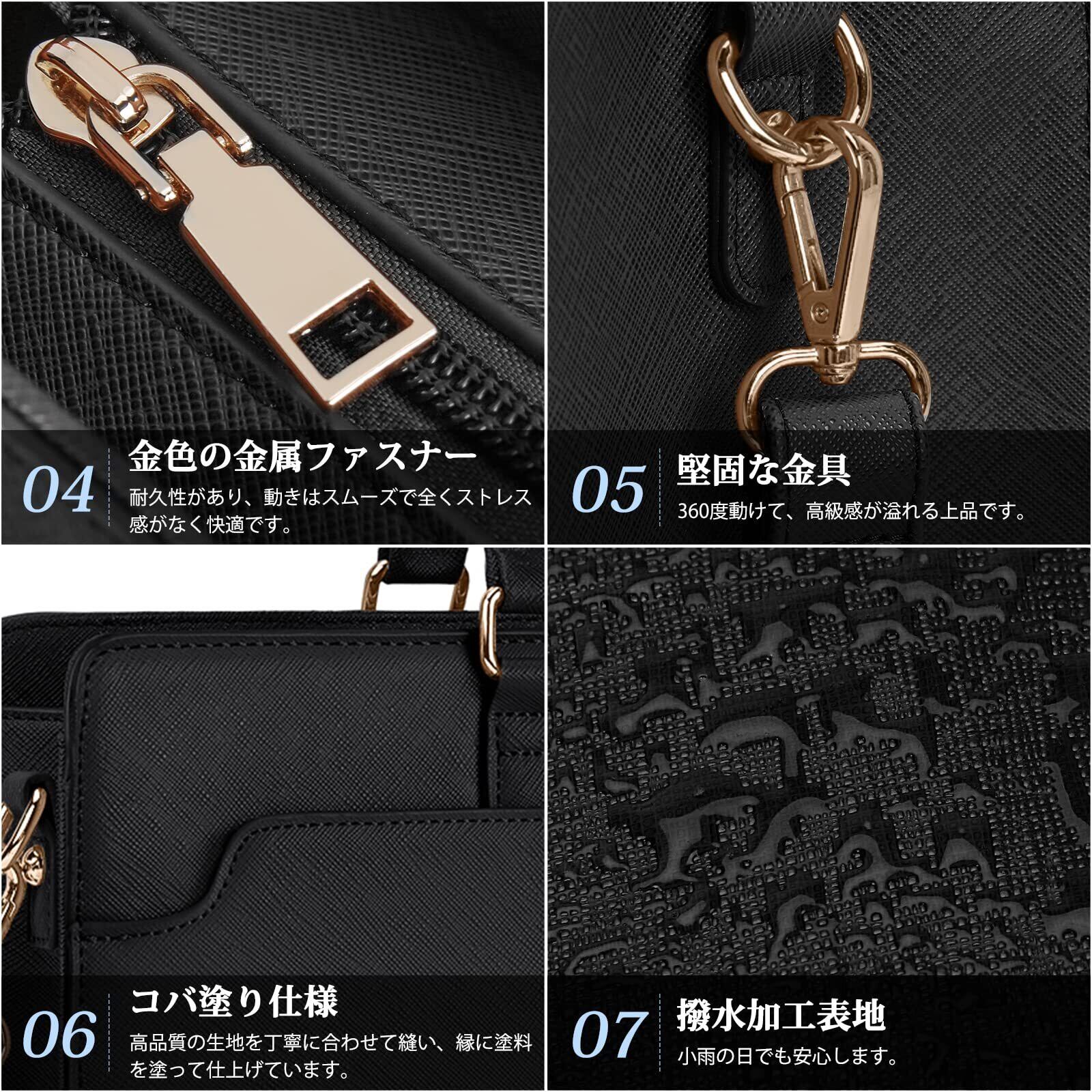 「耐久性のある高級素材」高級PUレザーとポリエステルの組み合わせ、耐久性と耐摩耗性に優れて、汚れに強く、扱いやすいです。雨の日に濡れやすい内部資料や書類を考慮し、撥水加工を施し、小雨の中でも安心して使用することができます。