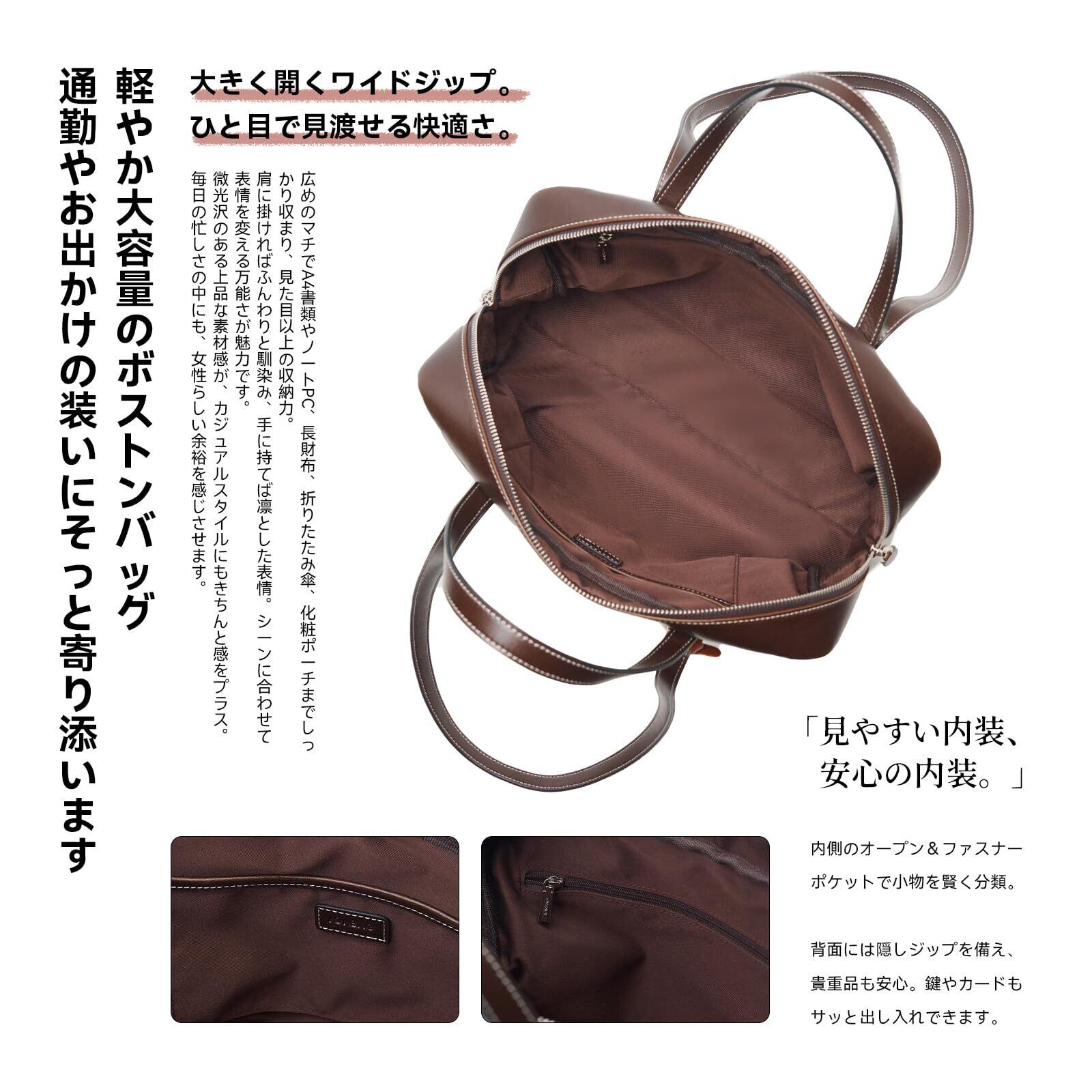 【JONBAG ヴィンテージシリーズ】ボストンバッグ レディース 大容量 通勤 旅行 A4対応|ヴィンテージ調レザー風素材で上品なツヤ感|トート・ブリーフケース・リュック・バケットバッグ・モノグラムトートも展開中|大人のこなれ感を引き出す上質デザイン