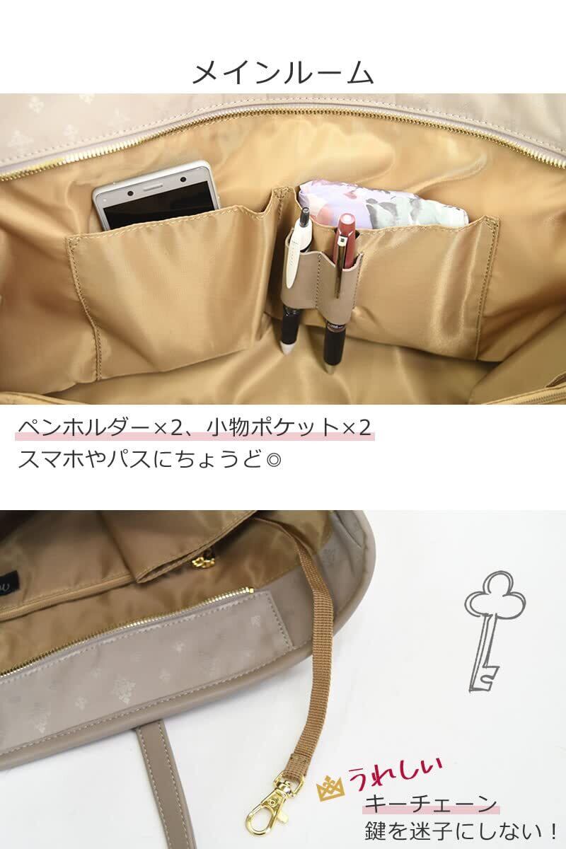 ◆超軽量約500g:機能いっぱいでこの軽さ。◆7つのポケット:充実のポケット設計で小物がスッキリ整頓。ボトルポケット搭載。◆上品できれいめデザイン◆A4ファイル対応:お仕事にもデイリーにも使いやすい大きさ。 ◆鍵の紛失を防ぐキーストラップ ◆肩掛けしやすい長めなハンドル。