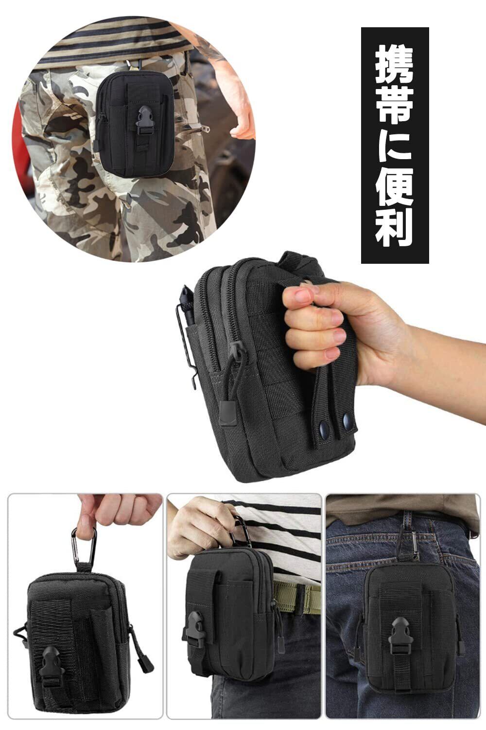 YFFSFDC 多機能ポーチ ベルトポーチ ウエストポーチ 小物入れ ウエストバッグ 携帯便利 大容量 登山 探検 キャンプ アウトドア用(ブラック)