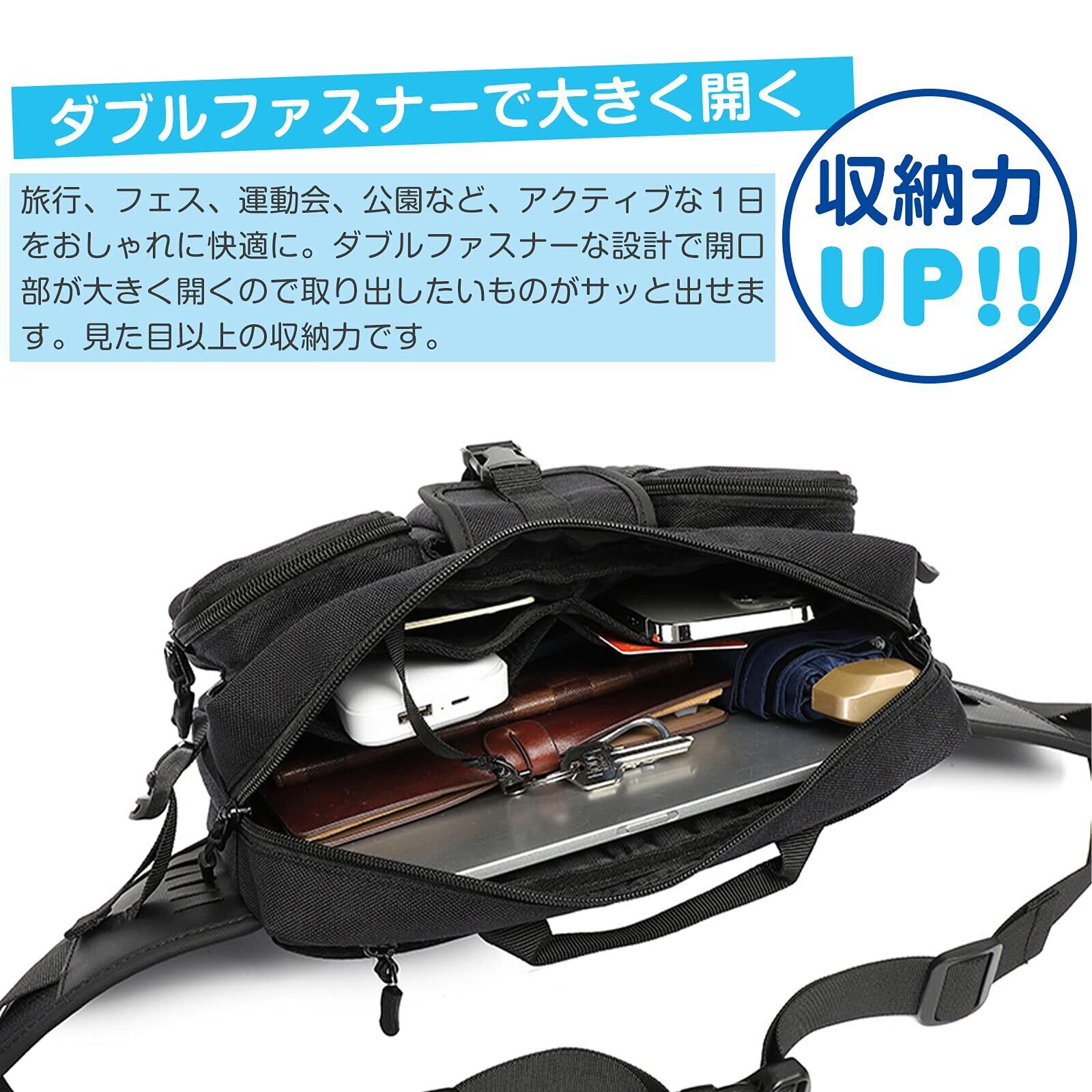 2WAY ウエストバッグ 多機能 ウエストポーチ 収納力 ボディバッグ 11ポケット ベルトバッグ 旅行バッグ 調節可能ベルト 小分け用フロントポケット ショルダーポーチ ワンショルダー ヒップバッグ バイク 釣り 旅行 ランニング 仕事 作業用 4L