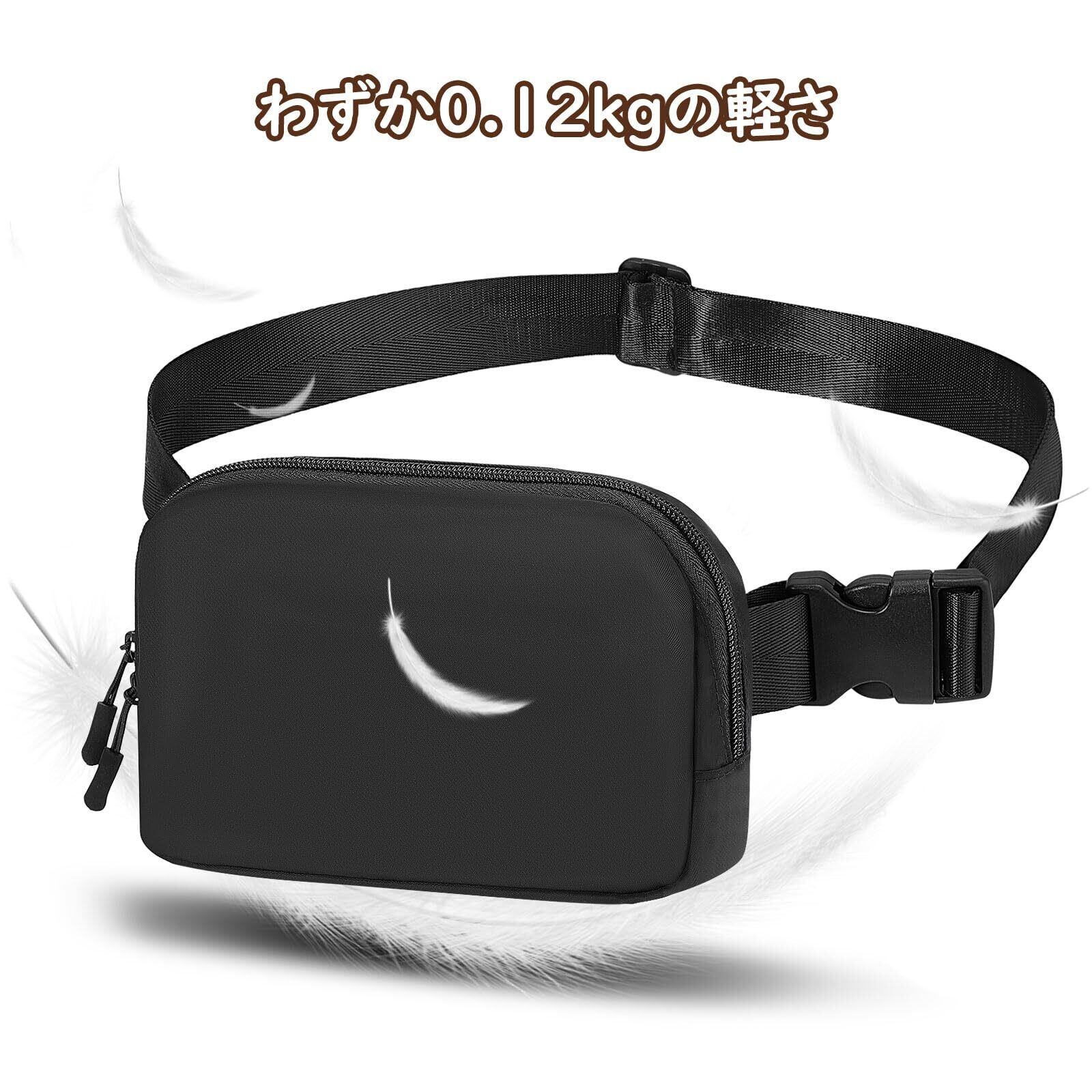 【新着商品】MoKo ウエストバッグ ウエストポーチ レディース メンズ ナイロン 斜めがけ 肩掛け ナイロン製 ミニサイズ コンパク 軽量 外出/アウトドア/旅行 シンプル 無地ブラック