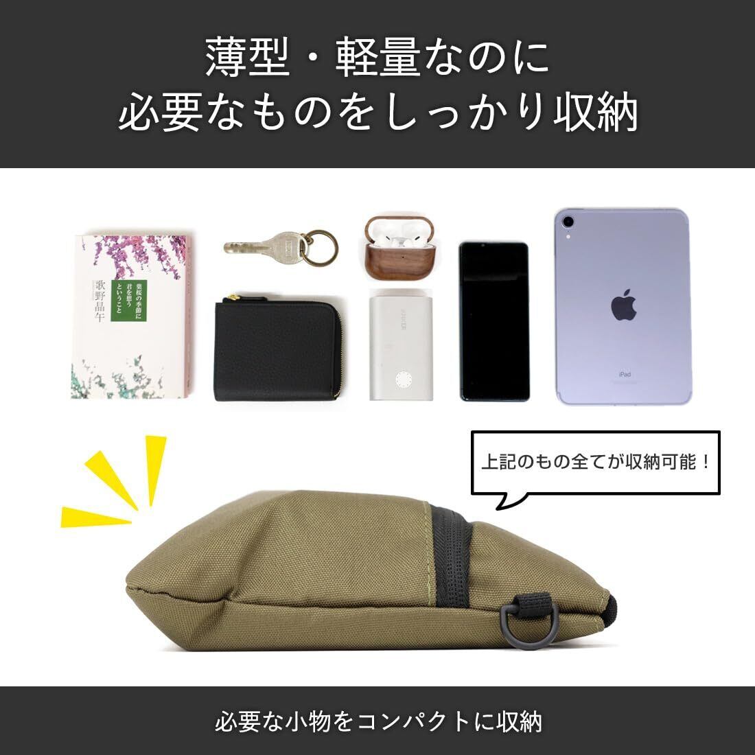 【軽量でコンパクト】マチがなく薄型のシンプルデザイン、必要な物をしっかり収納可能です。75gで超軽量なので長時間使用でも肩こりや首の疲れを軽減。また引裂きにも強い生地を採用。