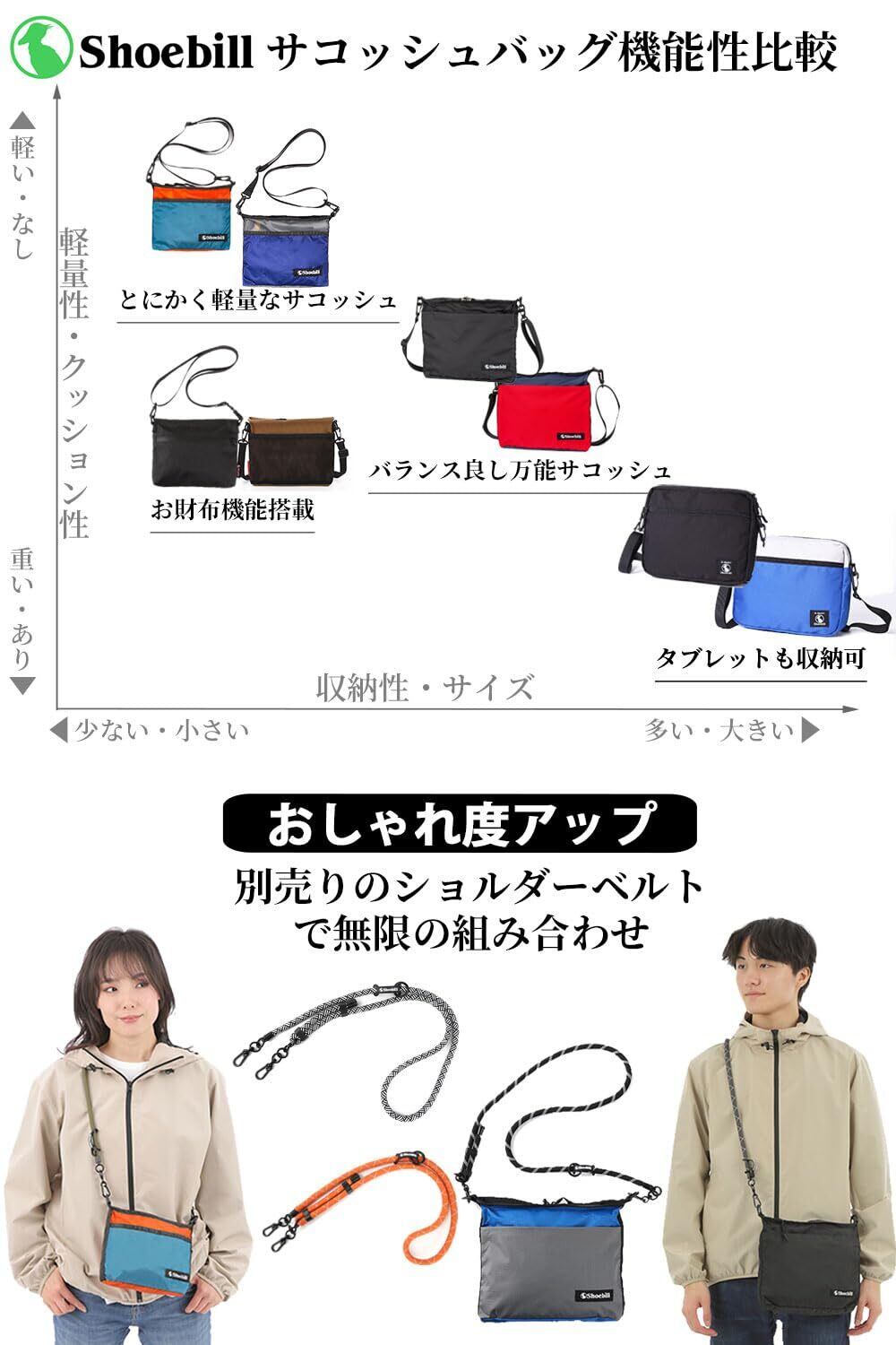 [Shoebill] サコッシュ バッグ ショルダーバッグ ナイロン 防水 登山 アウトドア 軽量