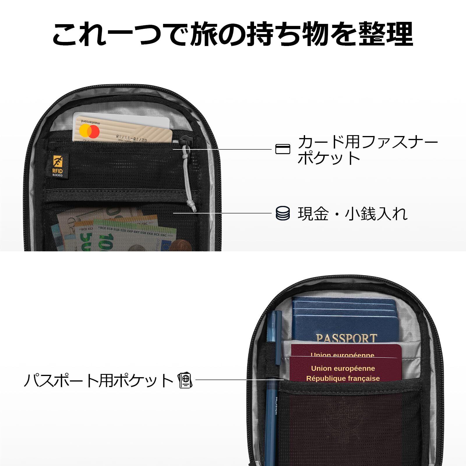 【旅に最適、整理しやすい収納構造】パスポート4〜6冊収納可能。現金、コイン(メッシュポケット)、カード(ファスナーポケット)、スマホ、モバイルバッテリーなど、必要なものをすっきり分けて収納できます。移動中の小物管理が楽々。