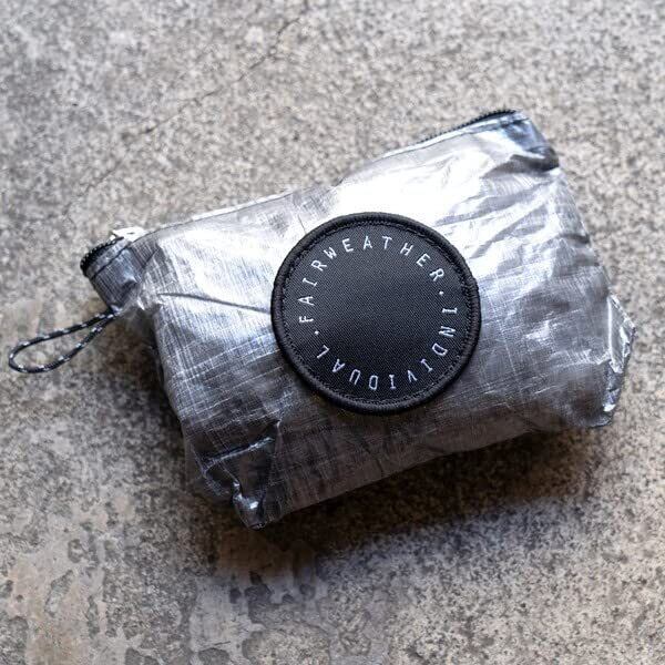快晴、晴天という名のブランド "FAIRWEATHER/フェアウェザー" の防水サコッシュです。 通称キューベンファイバーとも呼ばれるダイニーマコンポジットファブリックを使用しています。 世界で最も強靭な繊維といわれるダイニーマを樹脂コーティングすることで極薄のフィルム状に仕上げた超軽量の防水素材です。 軽さとともに特筆すべきはその耐久性の高さ。 摩擦や折り曲げに強く、紫外線や水分、化学薬品に対しても非常に優れた耐性を持っています。 防水ファブリックを使用するとともに、縫い目からの浸水を防ぐシームシール処理を施すことで、雨の日でも安心して使える高い防水性を備えています。 雨の日には口を何度かロールしてから使うことで、中の物を濡らす心配をさらに減らすことができます。 高い防水性は「中の物を濡らさない」だけでなく「濡れ物を収納する」のにも便利なので、ジムやプール用のバッグとしてもおすすめ。 たためば軽量コンパクト、広げれば大容量のサコッシュは色々な場面で活躍してくれそうです。 MADE IN JAPAN