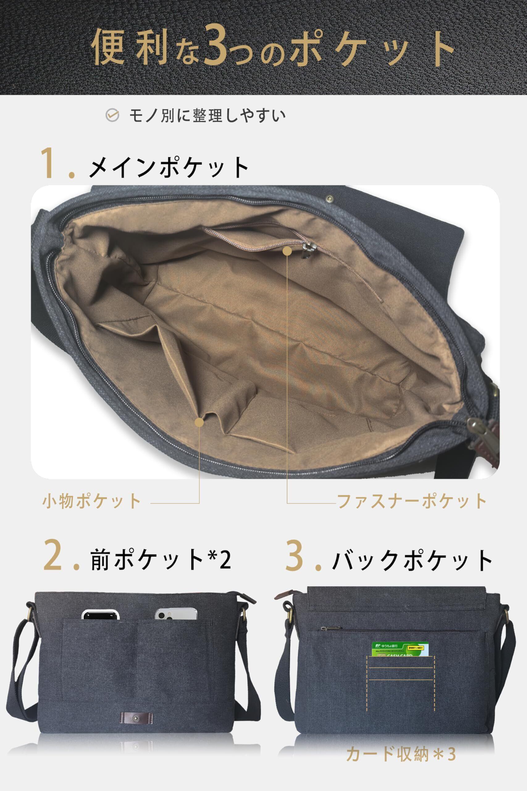 [Flechazo] ショルダーバッグ メンズ メッセンジャーバッグ 厚手帆布 育つ本革 YKKファスナー A4対応 14インチ 大容量 通勤 旅行 軽量 一生モノ