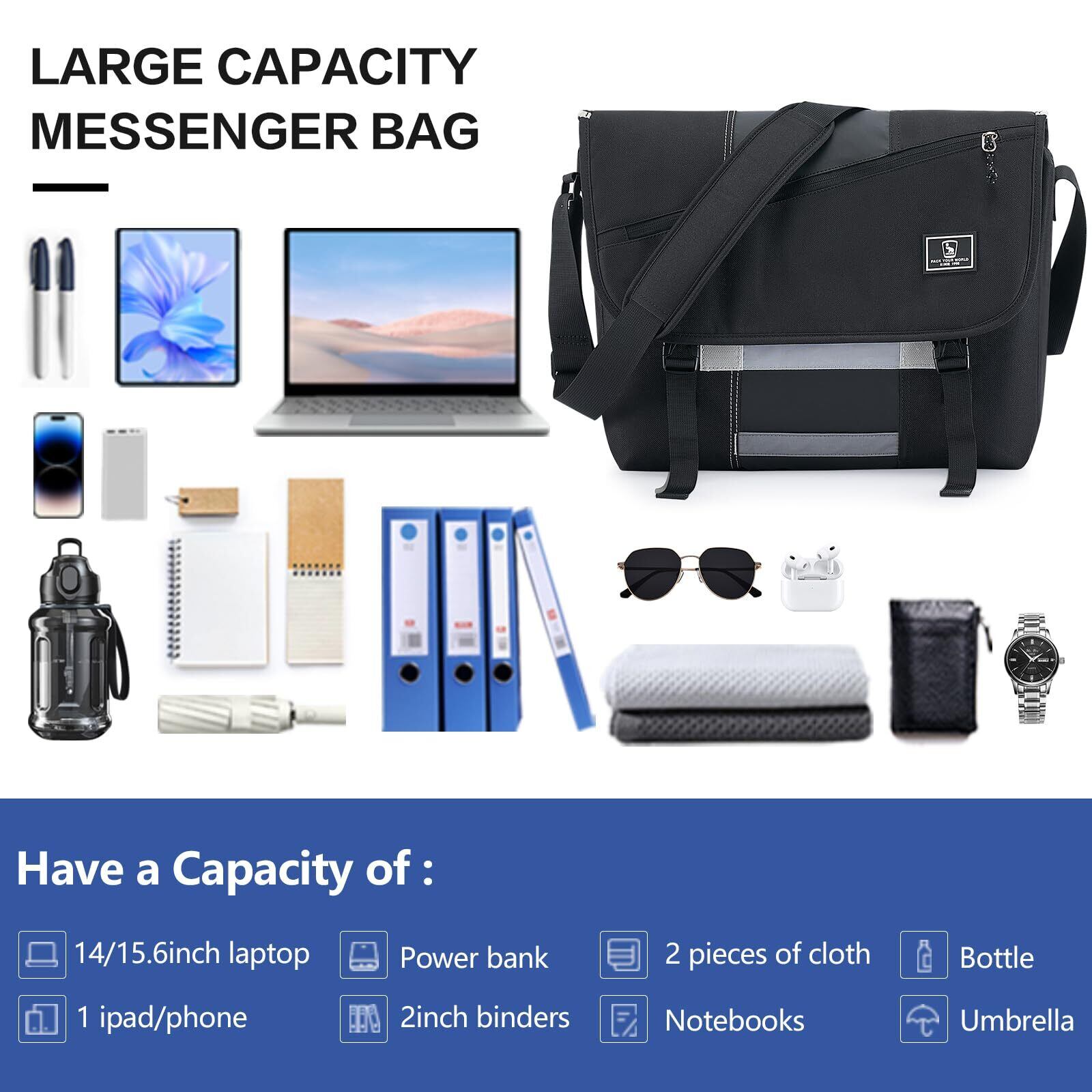 ノートパソコンコンパートメント付きメッセンジャーバッグ - 大容量のコンピューターバッグ - 書類、15.6インチのノートパソコン、2インチのバインダー、財布、携帯電話、電源、メガネなどを入れることができます。 独立したパッド入りノートパソコンコンパートメントがノートパソコン/ノートブックを保護します