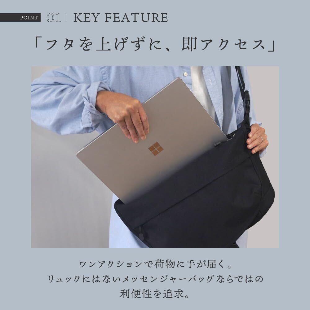 【即アクセス×大容量】LASIEMからメッセンジャーバッグが新登場! ・シークレットファスナー ・ノートPCも入る ・大容量 ・軽量 ・ユニセックス ・高耐久撥水ナイロン 【フタを上げずに、即アクセス。】ワンアクションで荷物に手が届く。リュックにはないメッセンジャーバッグならではの利便性を追求。 【秘密のファスナーで、メイン直結】フラップを持ち上げずにメインスペースへアクセスできるシークレットファスナーを搭載。また、両開きファスナーで左右どちらからでも簡単に開閉可能。