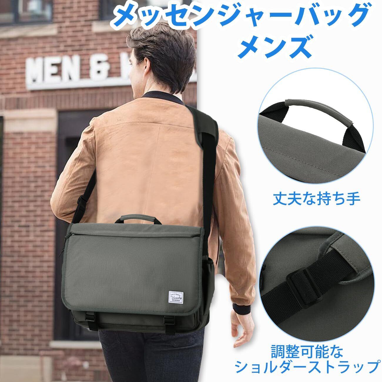 VASCHY ショルダーバッグ メンズ,大容量 メッセンジャーバッグ a4 斜めがけ 15.6インチPC収納 17つポケット ビジネスバッグ 軽量 撥水加工 通勤 通学 旅行 かばん 手提げ付き 多機能