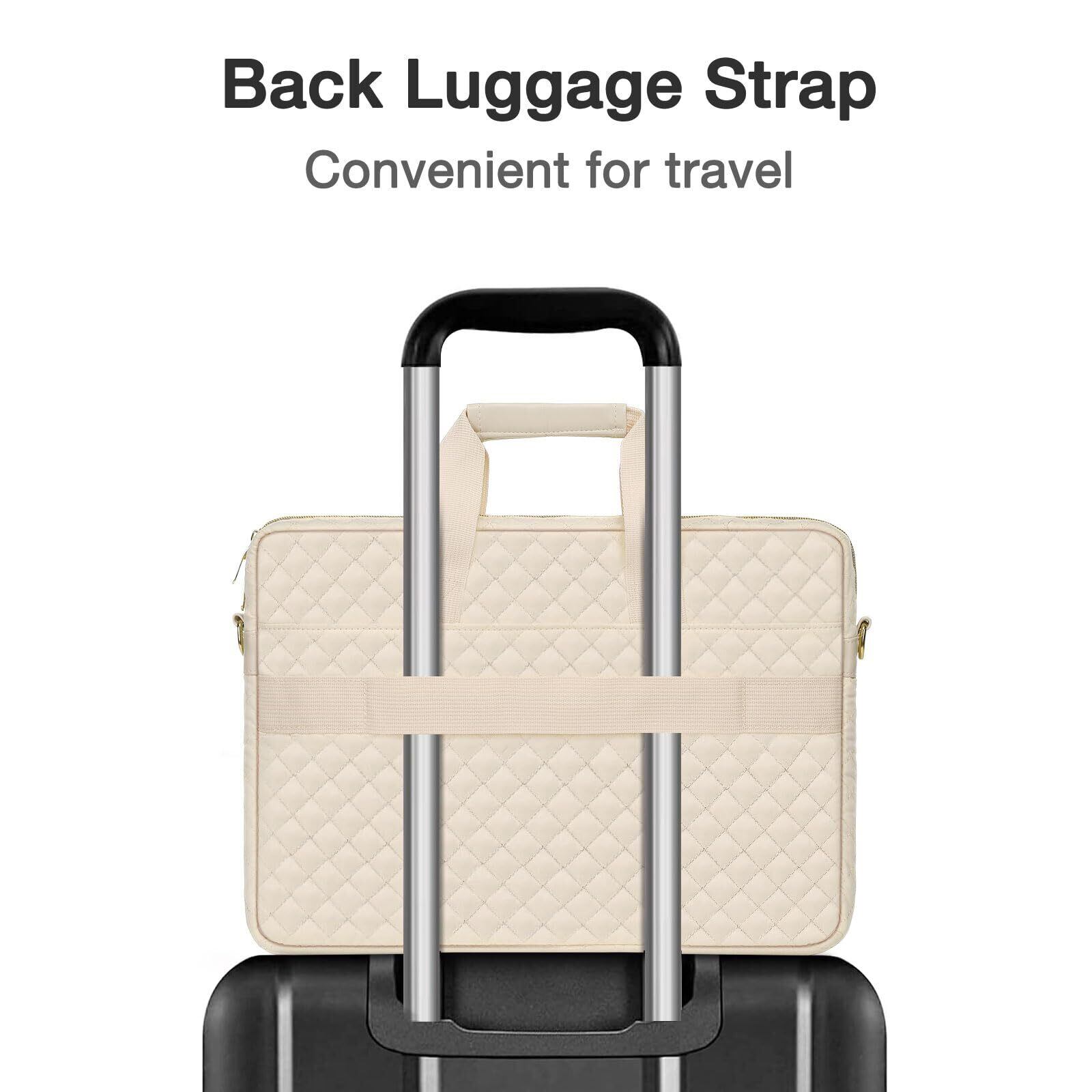【2025最新】[MOSISO] 15-15.6インチ、ラップトップショルダーメッセンジャーバッグ、 女性用 男性用 ブリーフケース、16インチ、 スクエアキルティング 旅行ビジネスバッグ、 3ポケット & ベルト付き(ベージュ)
