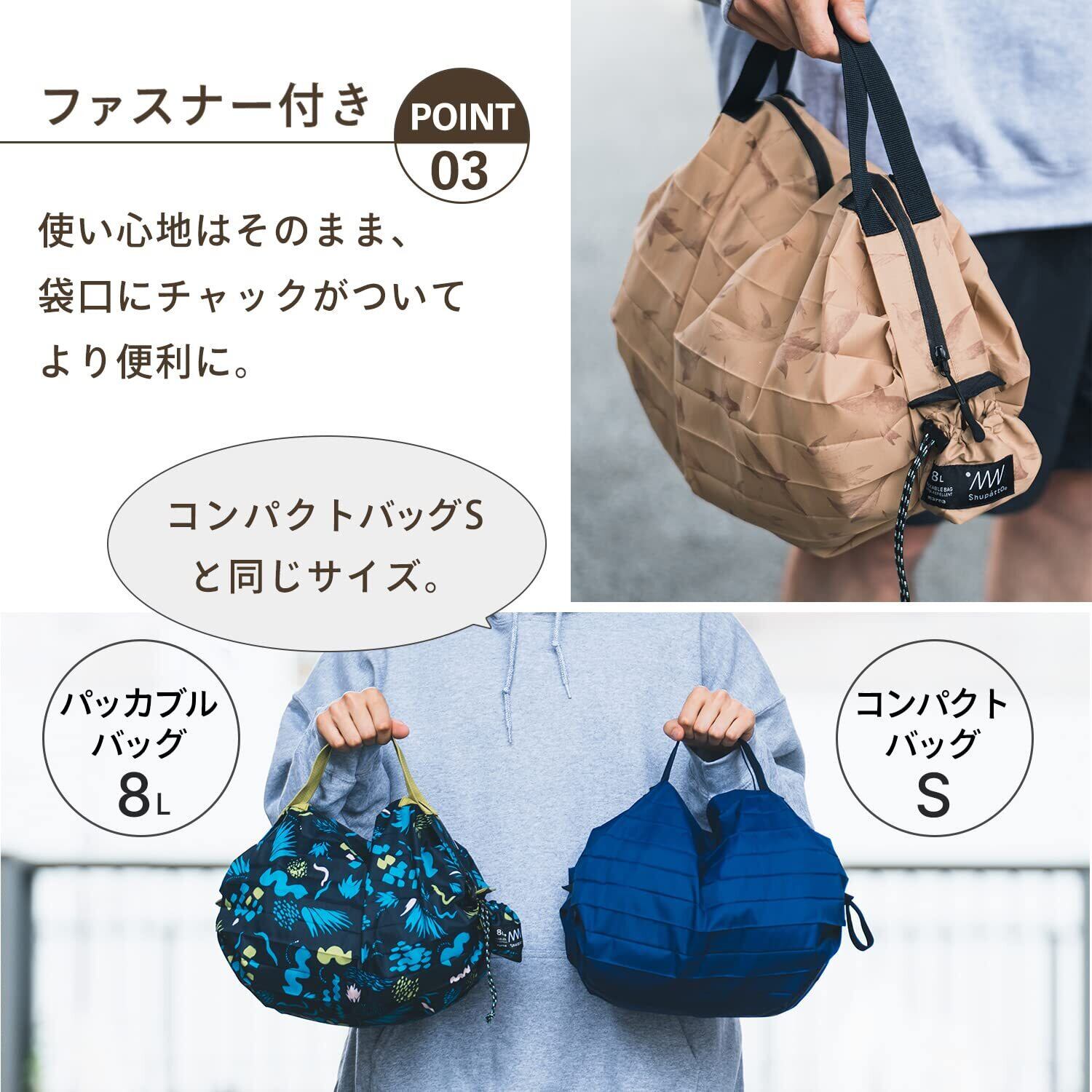 【2025最新】[マーナ] Shupatto パッカブルバッグ ファスナー付き (8L/27L) 撥水生地 シュパット アウトドア バッグ 折りたたみ (コンパクト/丈夫)